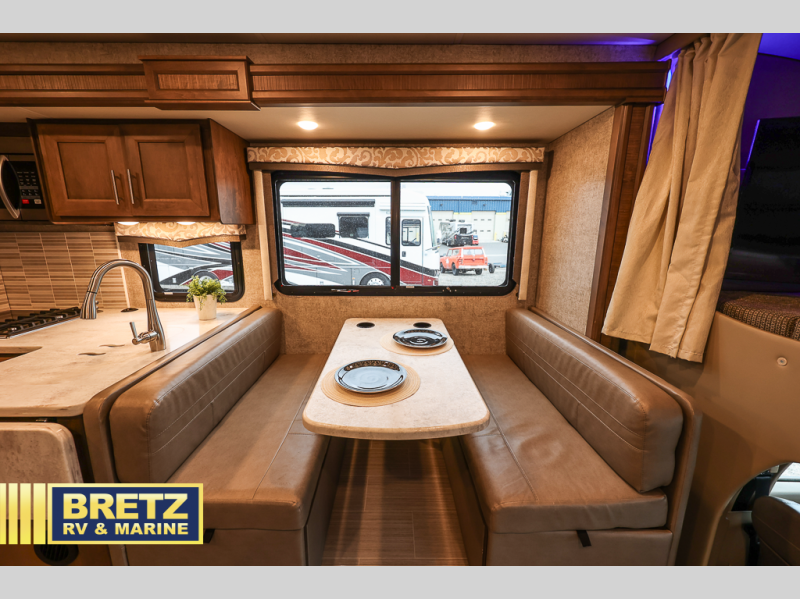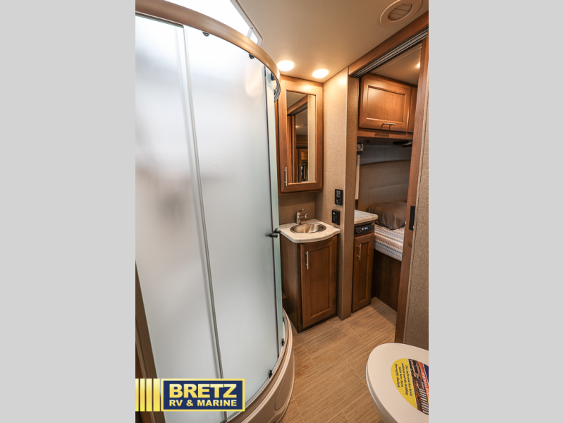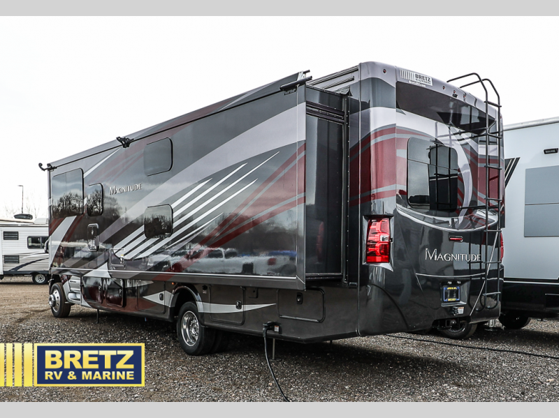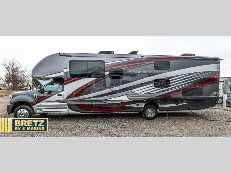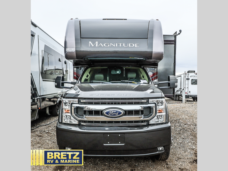 With every Magnitude super C diesel motorhome by Thor Motor Coach you will experience comfort and strength at every turn. The PowerStroke Turbo Diesel engine can power any trip you have planned, and the 100-watt solar charging system with a power controller allows you to go off-grid if you want. There are even two models that feature four wheel drive that will give you endless possibilities. Inside, you'll enjoy a 7' ceiling height, LED interior lighting, residential linoleum throughout, and a ceiling ducted A/C system. The chef of the family will love the Magnitude's kitchen that includes solid surface countertops, decorative tile backsplashes, and a 16 cu.ft. residential refrigerator with an icemaker. Go where no other motorhome has gone before in a Magnitude Super C!