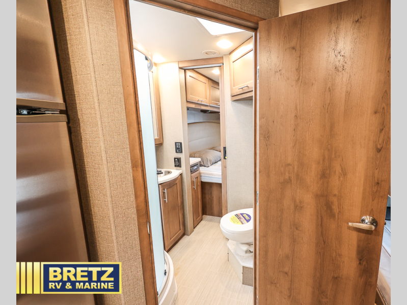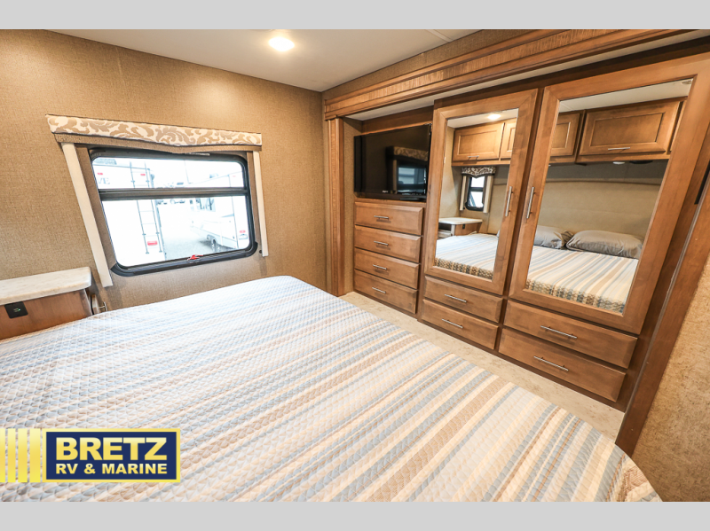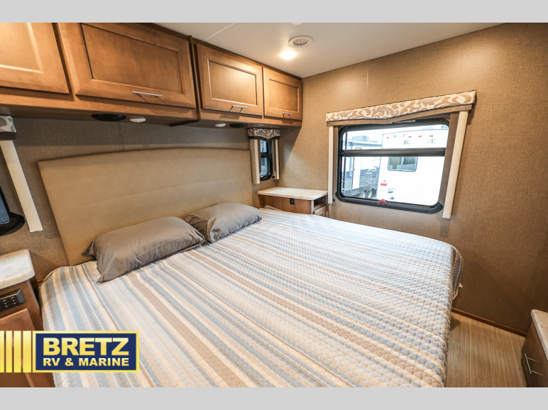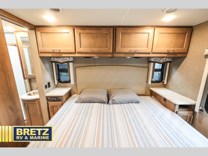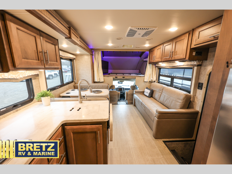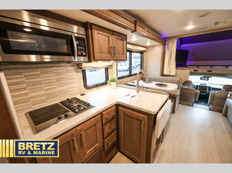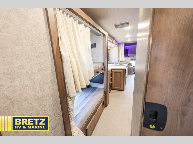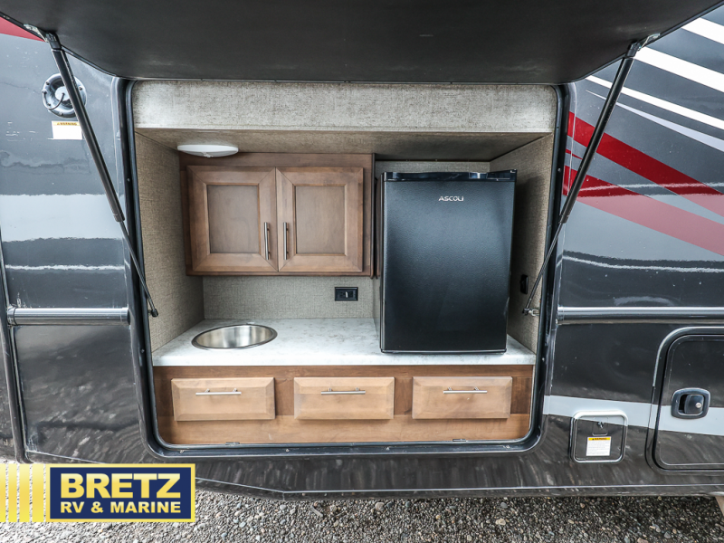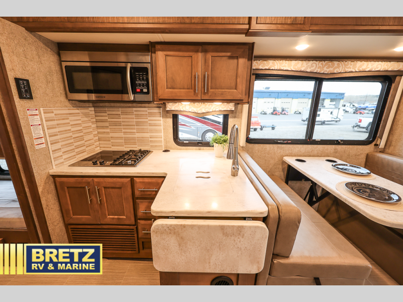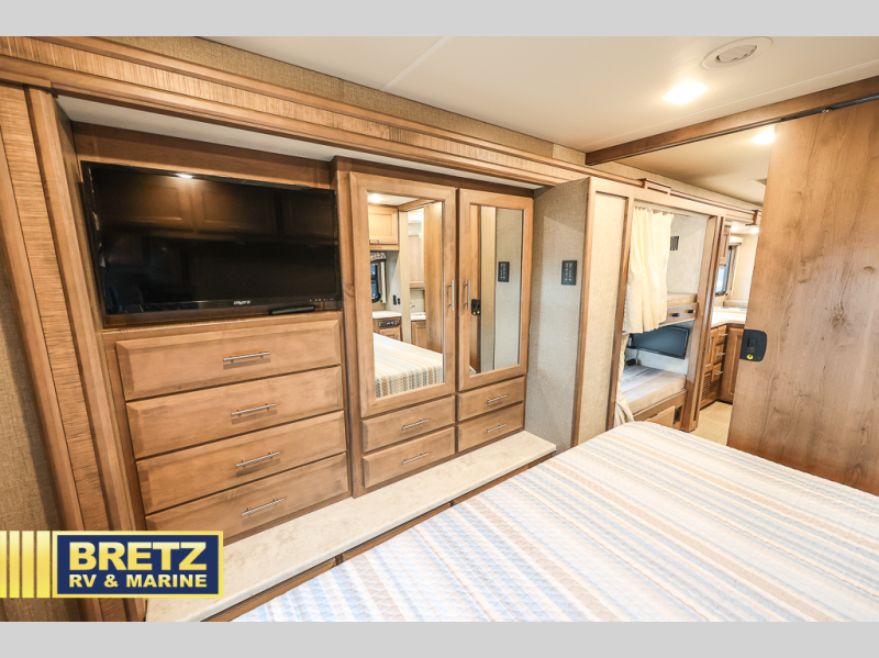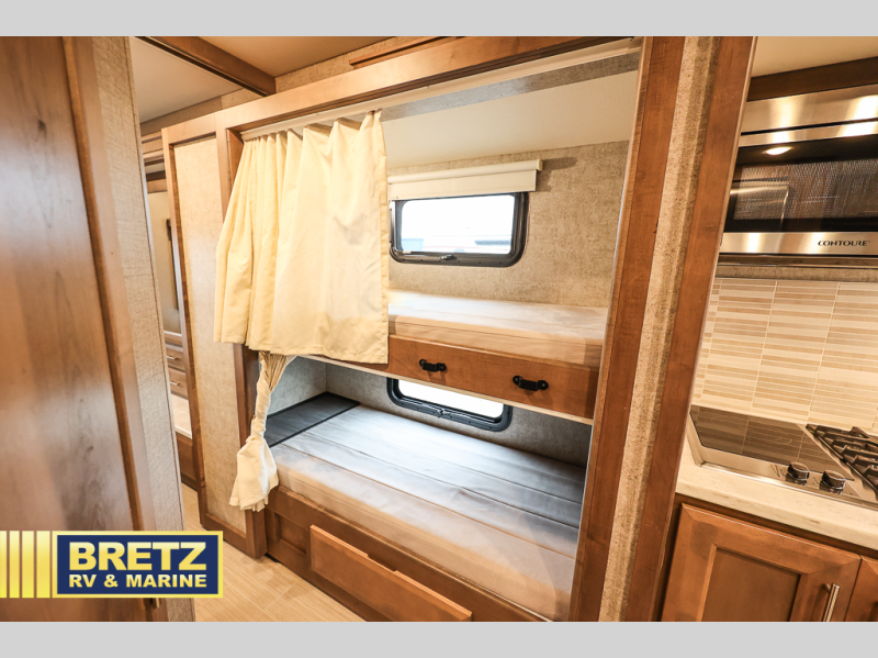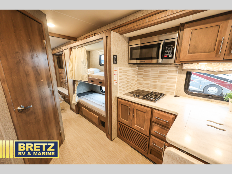 The kids will be begging you to take them camping every weekend in this motorhome that includes bunk beds. There are even two TV's with DVD players in the bunks so the kids can each watch their own show. Mom and dad will enjoy the king bed at the rear of the unit and you'll find additional sleeping space on the Dream Dinette, the 74" sofa bed, or on the cab-over bunk. Get cleaned up every morning in the full bath that features a shower with an obscure glass door, then head to the kitchen to prepare breakfast on the two burner induction cooktop. You may even want to throw a breakfast burrito in the convection microwave before you head out the door!