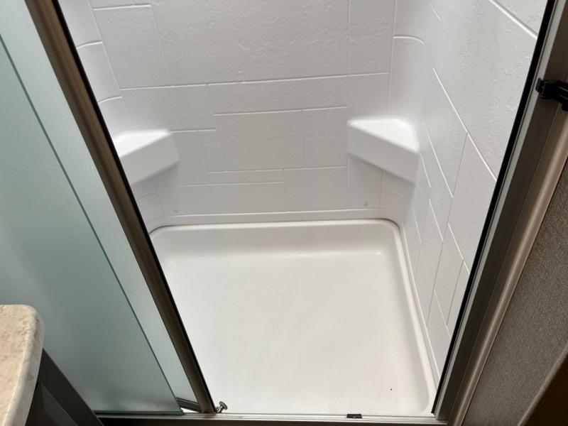 No more running to campground facilities — enjoy your own spacious bathroom with a shower, toilet, and vanity. The practical design and quality fixtures make daily routines easy and comfortable wherever you roam.