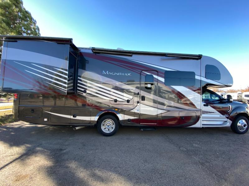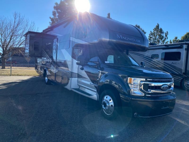 With every Magnitude Super C diesel motorhome by Thor Motor Coach you will experience comfort and strength at every turn. The PowerStroke Turbo Diesel engine can power any trip you have planned, and the 100-watt solar charging system with a power controller allows you to go off-grid if you want. There are even models with four wheel drive available that will give you endless possibilities. Inside, you'll enjoy a 7' ceiling height, LED interior lighting, residential linoleum throughout, and a ceiling ducted A/C system. The chef of the family will love the Magnitude's kitchen that includes solid surface countertops, decorative tile backsplashes, and a 16 cu. ft. residential refrigerator with an icemaker. Go where no other motorhome has gone before in a Magnitude Super C!