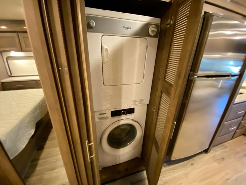 Pack your bags and gas up this motorhome then head out on your greatest adventure! The rear private bedroom has a queen bed with closets on either side, a 32" TV, and a dresser/closet slide, plus there is a stackable washer and dryer just outside of the bedroom to keep your clothes looking their best. The full bathroom has a 30" x 36" shower for you to start each morning feeling clean and fresh. Grab some eggs and bacon from the residential stainless steel refrigerator with ice maker, fry them up on the electric induction cooktop, and then enjoy them at the 72" Dream Dinette which can also transform into a sleeping space. The 76" sofa bed can also transform into a sleeping space and the 54" x 74" overhead bunk offers another comfortable sleeping space!