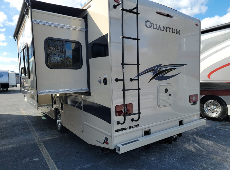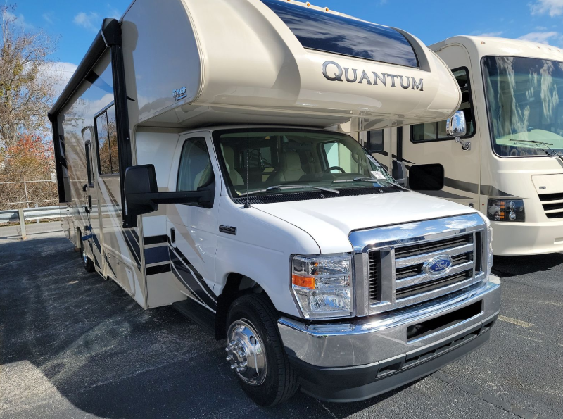 With any Quantum Class C gas motorhome, the construction includes a welded tubular steel floor, a welded tubular aluminum roof and sidewall cage construction, a premium one-piece TPO roof, plus black framed windows or frameless slider windows depending on the Quantum you choose. The interior offers decorative glass inserts in the kitchen overhead cabinet doors and kitchen accent countertop lights for the style, full extension metal ball-bearing drawer guides, plus a 7-inch touchscreen dash radio with a back-up monitor the driver will appreciate. The Platinum package comes standard and offers stainless steel wheel liners, premium window privacy roller shades, and an outside shower plus more! No more dreaming, you can choose your favorite Quantum and start your RVing lifestyle!