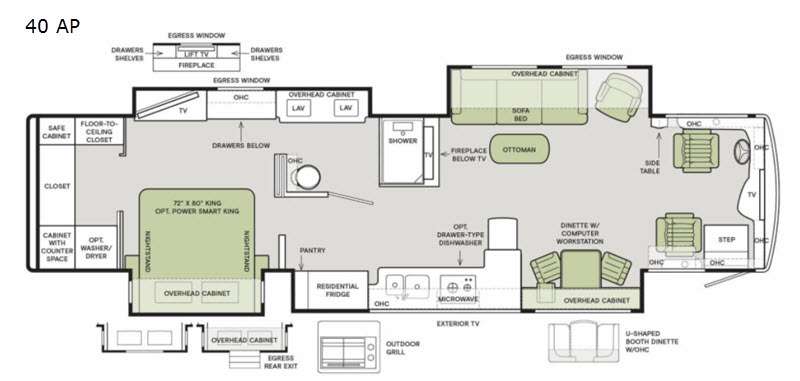 Tiffin Motorhomes Allegro Bus Class A diesel motorhome 40 AP highlights: