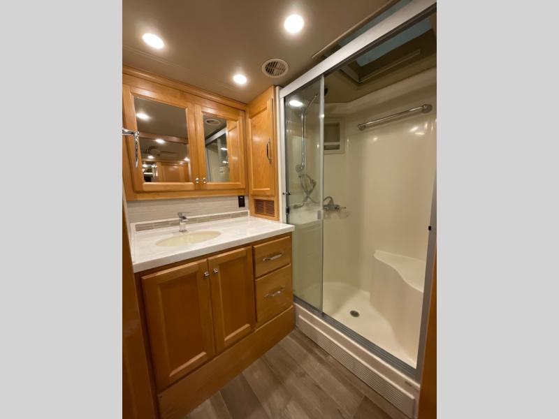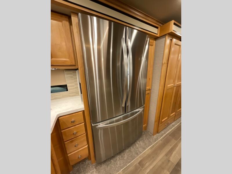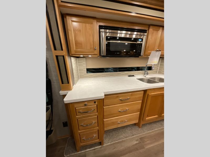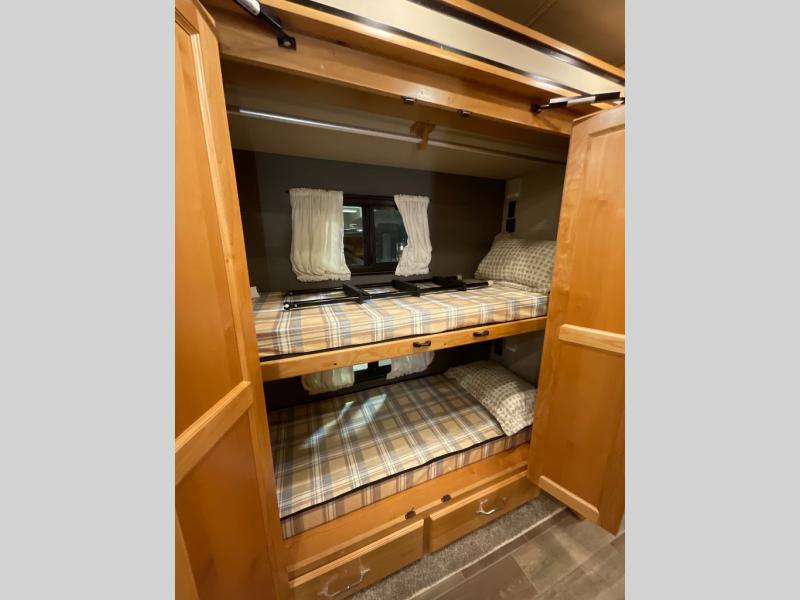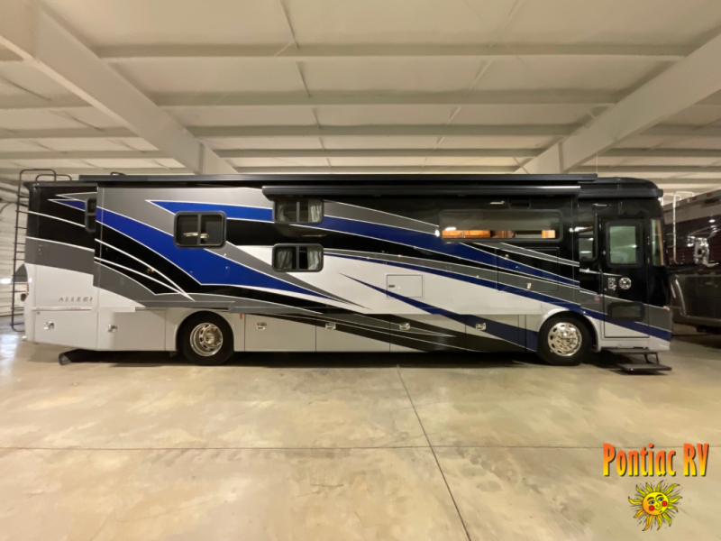 You won't believe how much style and class comes with this Allegro RED Class A diesel motorhome! From the rear master suite to the four flat-panel TVs, this coach is decked out with modern and accommodating amenities. The bunk beds will catch your attention because they will allow you to offer some extra sleeping space to any friends or family that want to join you on the road, yet they don't take up much space. The kitchen is also going to be a favorite of yours with its expand-an-island, residential refrigerator, convection microwave, and double-bowl sink. You can also make this coach even more residential by adding the optional fireplace in the main living area.