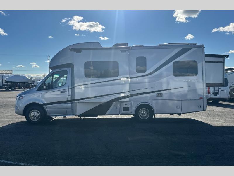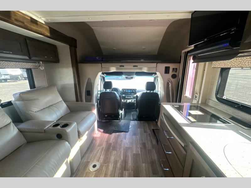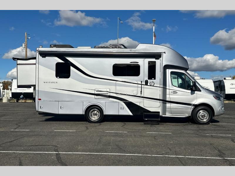 With each Wayfarer Class C diesel motorhome by Tiffin Motorhomes you will enjoy the ride as much as the destination with the ergonomic heated seats, the 10.25" Mercedes-Benz User Experience (MBUX) multimedia system with in-dash navigation as well as the Mercedes chassis and turbo diesel engine offering high-performance. The interior offers plenty of storage for clothing, linens and such as well as LED reading lights, inverted outlets in the bedroom for a CPAP machine, kitchen over and under-the-counter lighting, plus more! Take a Wayfarer on the road for any reason you want, either maximum spatial efficiency, ample storage and/or luxury features!