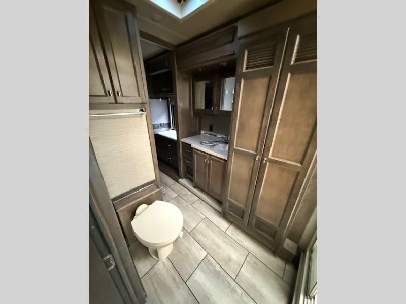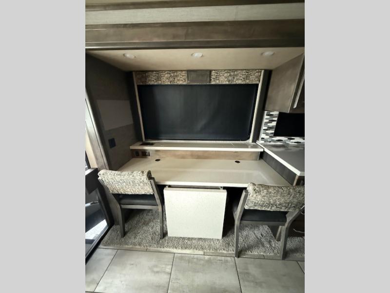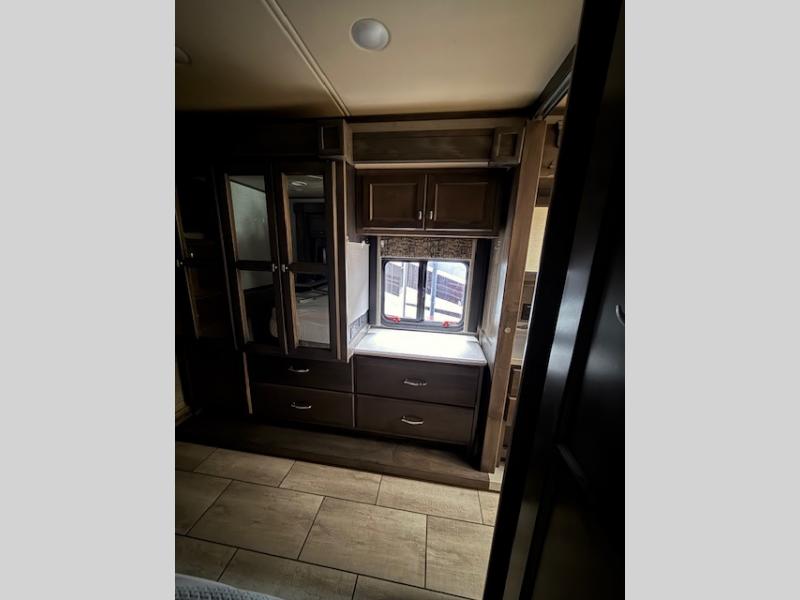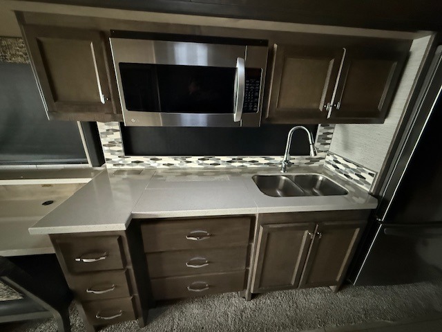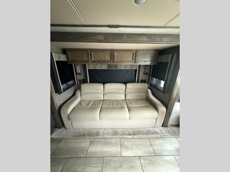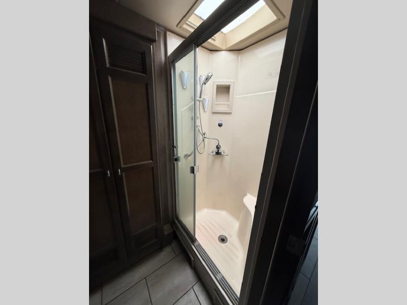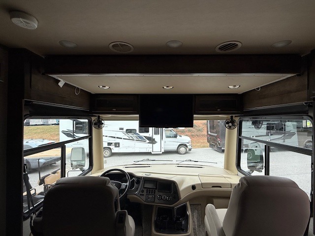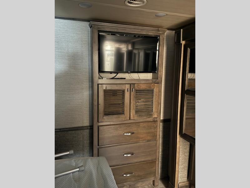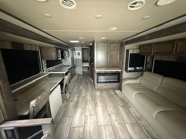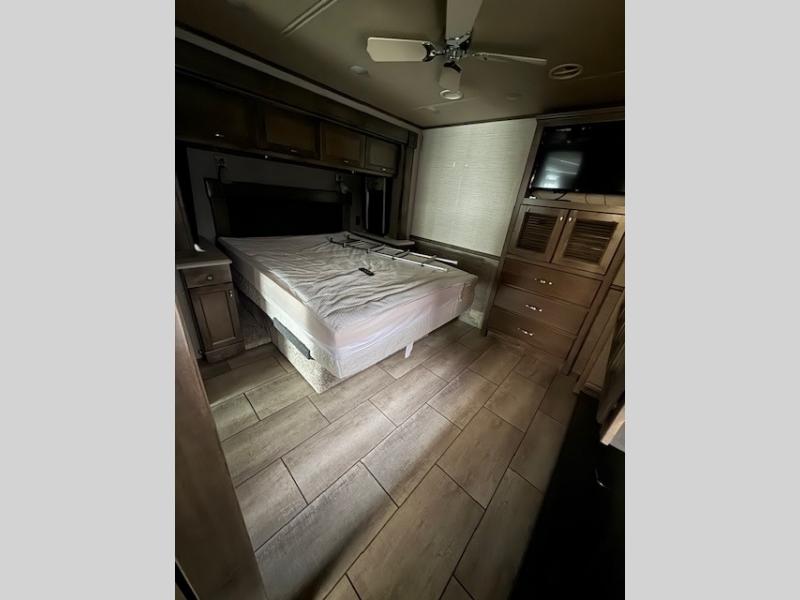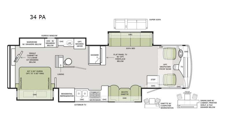 There are plenty of standard features and options to make this motorhome exactly what you want! From the optional drop down bunk over the front Ultraleather power driver and passenger seats and the optional dinette with a computer workstation that can be replaced for the booth dinette to the optional washer and dryer area inside the bathroom. You can even choose to add the optional fireplace below the flat panel TV for even more comfort as you relax on the sofa bed slide out. The rear private bedroom comes standard with a 60" x 80" queen-size memory foam mattress but if you want something bigger then you can switch it out for the optional king-size mattress instead. Yet you might decide the RV is perfect just as it comes!
