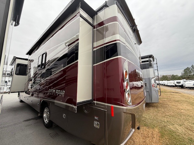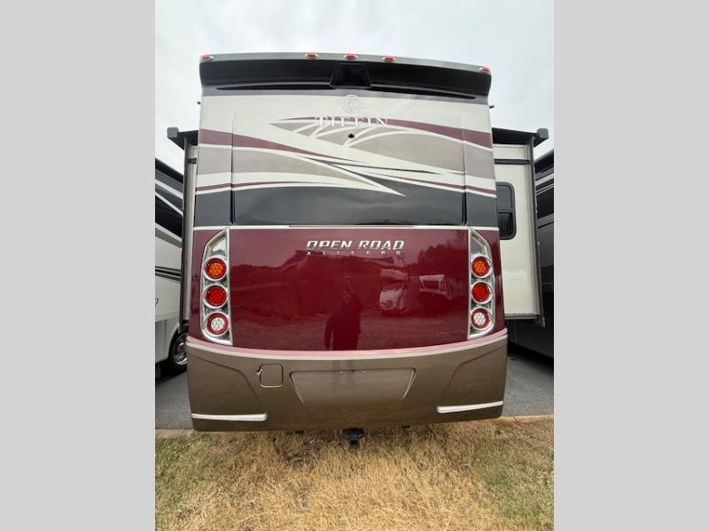 Each Open Road Allegro Class A gas coach by Tiffin Motorhomes offers a one-piece moisture resistant molded fiberglass roof cap providing insulation and strength, a durable and lightweight tubular aluminum wall skeleton, and fiberglass front and rear caps allowing you to enjoy your motorhome for many years to come. The multiplex Spyder Controls system allows you to monitor various tank levels and adjust electrical components of the coach from the comfort of one screen, and the hydraulic automatic leveling jacks make set up a breeze. The kitchen panoramic galley window offers you beautiful scenery, and the high gloss flat panel hardwood cabinet doors, solid wood cabinet fascias, and Ultraleather furniture gives you comfort and style. The midsection flat panel TV, the sound bar system with a subwoofer, and the Blu-Ray player are sure to keep you busy on those rainy days. Start making a lifetime of memories with your own Tiffin Motorhomes Open Road Allegro Class A gas motorhome!