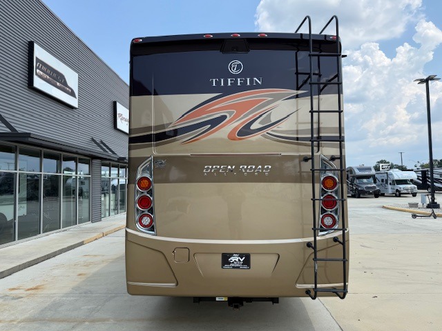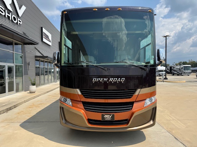 Each Open Road Allegro Class A gas coach by Tiffin Motorhomes offers a one-piece moisture resistant molded fiberglass roof cap providing insulation and strength, a durable and lightweight tubular aluminum wall skeleton, and fiberglass front and rear caps allowing you to enjoy your motorhome for many years to come. The multiplex Spyder Controls system allows you to monitor various tank levels and adjust electrical components of the coach from the comfort of one screen, and the hydraulic automatic leveling jacks make set up a breeze. The kitchen panoramic galley window offers you beautiful scenery, and the high gloss flat panel hardwood cabinet doors, solid wood cabinet fascias, and Ultraleather furniture gives you comfort and style. The midsection flat panel TV, the sound bar system with a subwoofer, and the Blu-Ray player are sure to keep you busy on those rainy days. Start making a lifetime of memories with your own Tiffin Motorhomes Open Road Allegro Class A gas motorhome!