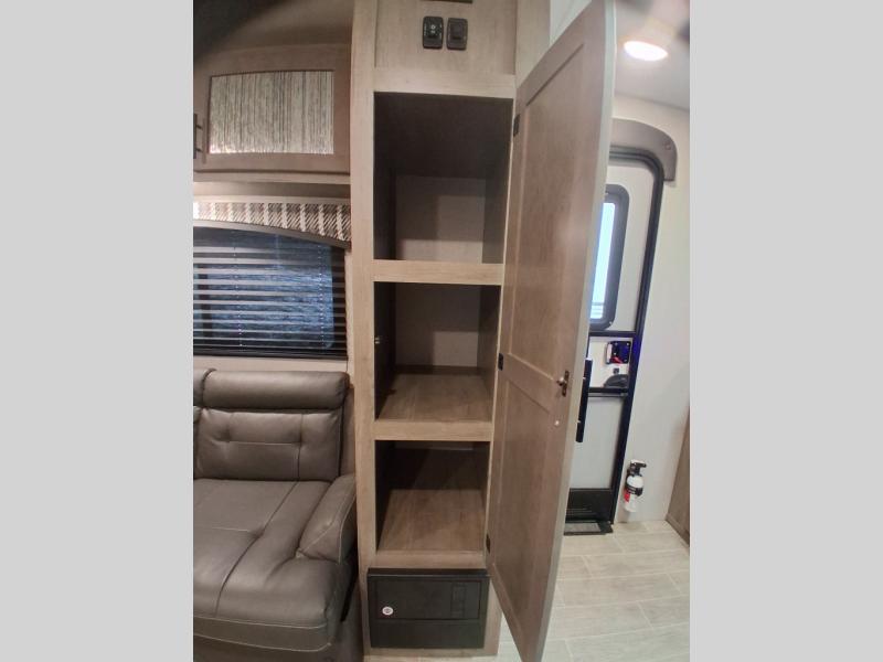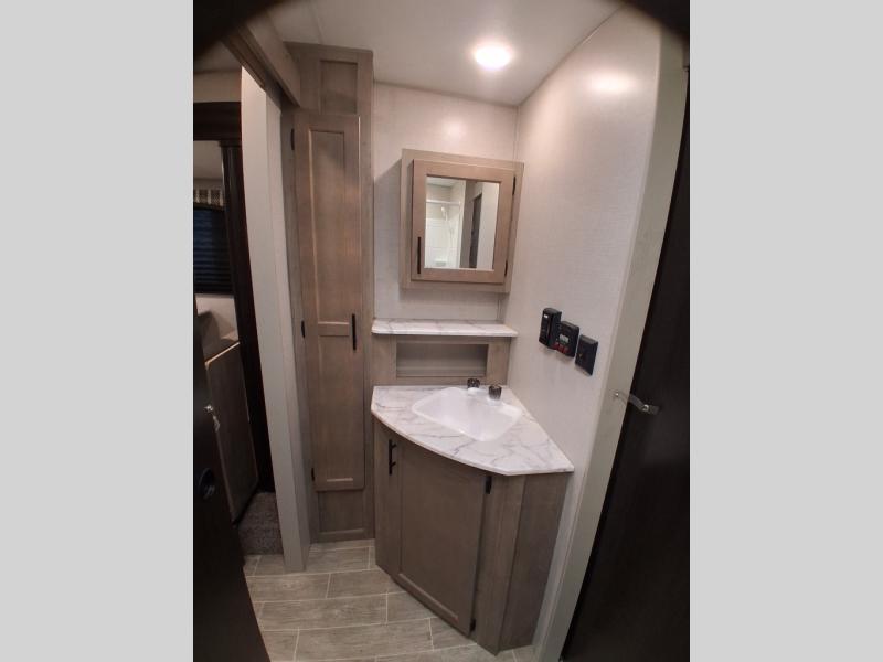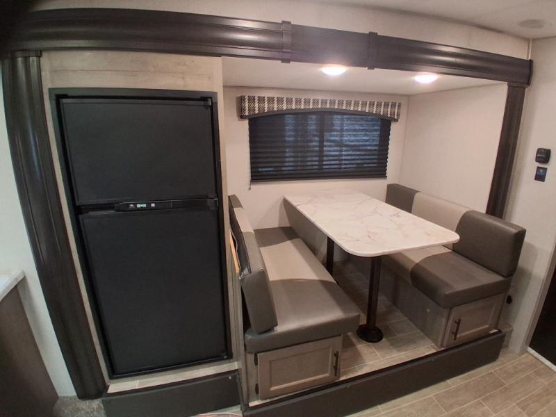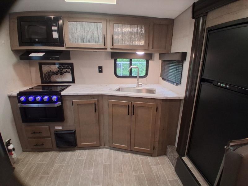 The rear kitchen on this Sonic travel trailer allows the cook to have ample counter space to prepare and serve meals, and it gives you an easy way to grab your food as you head outside to relax under the 17' awning. The single slide out gives you more walking around space, and you can stretch your legs out while enjoying the jiffy sofa or booth dinette. The convenient walk-through bathroom gives you easy access while in the main area as well as the front bedroom which includes an RV queen bed, StorMore bedside nightstands with a 110V outlet and USB charging, plus wardrobes. And, you can store your outdoor gear in the exterior pass-through storage that includes a motion-activated light.