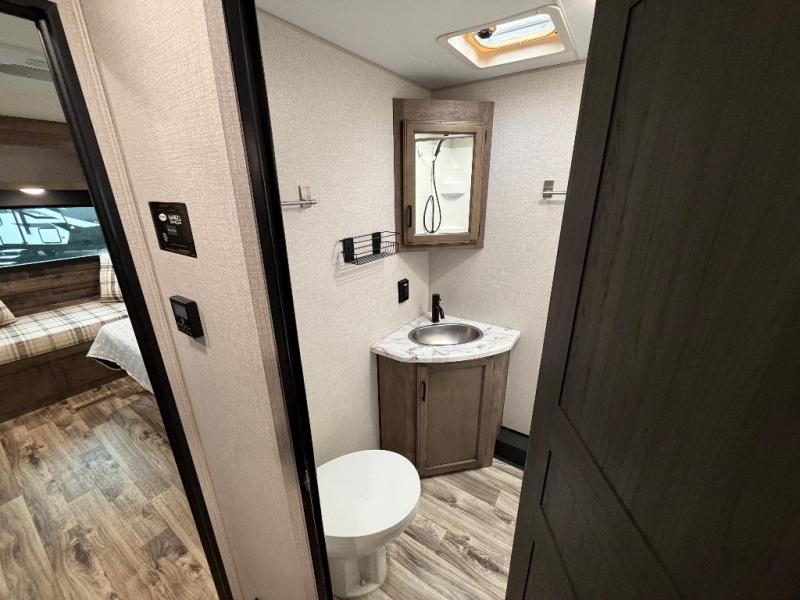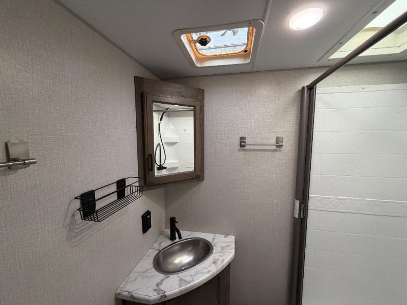 Every one of these SportTrek Touring Edition travel trailers by Venture RV have been built with a new sleek exterior that includes a painted fiberglass front cap with an integrated LED lighting! The Weather-Shield package includes insulation components that will allow you to camp in any season like the enclosed gate valves, the 360 degree radiant foil insulation, the radiant foil-wrapped tanks, and the reflective PVC roof membrane. Their solid construction offers peace of mind, as well as the comforts of home with the modern farmhouse design and the Venture connectivity board with Bluetooth control. There is a wide range of models for you to choose from, so come find the perfect one for you today!