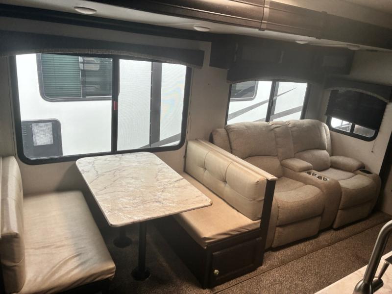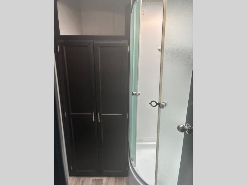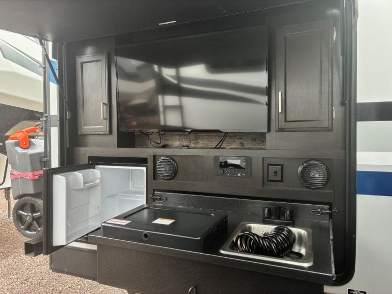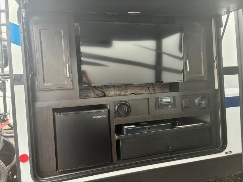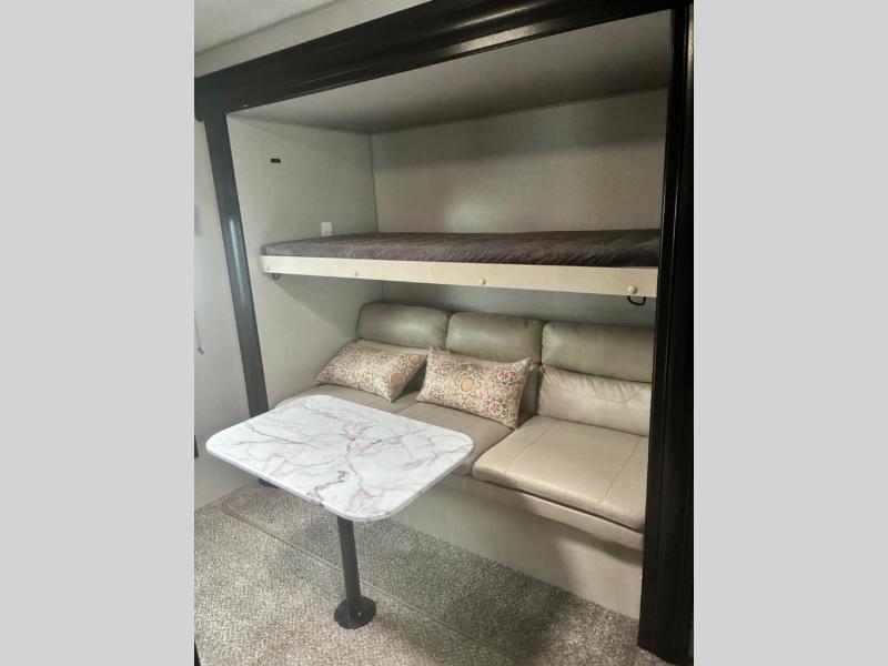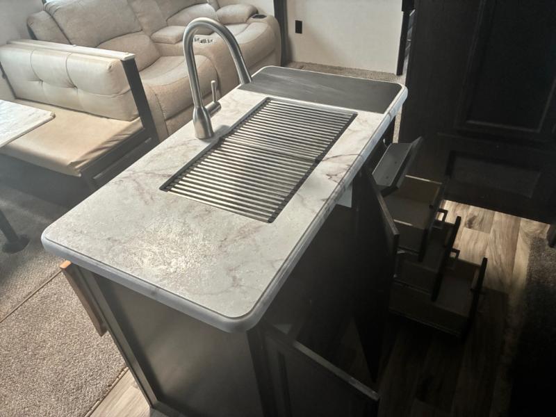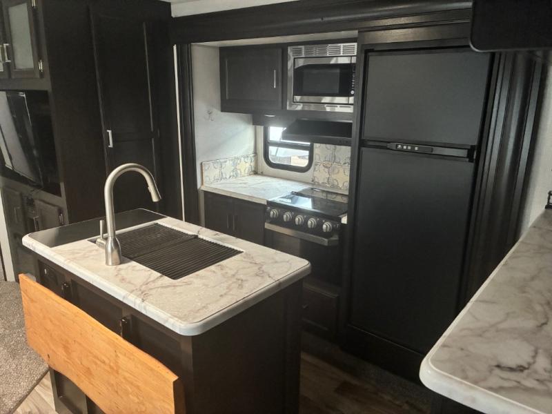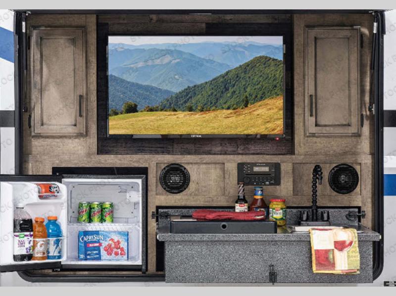 It will be amazingly easy to take the family out with this SportTrek travel trailer! There is a rear bunkhouse with a flip-up bunk, a 70" sofa with table, and a set of bunks, and there is even a closet so that your kids can store their clothes away. If you like watching movies, then you will definitely be impressed by the interior 40" TV with swing arm and the exterior 38" TV. The exterior TV is made even more special since there is also an outdoor café, so now you can make movie night a truly spectacular event. Back on the interior, the kitchen island is going to provide you with extra prep space in the kitchen, and at the front of this trailer is a master suite for you and your spouse.