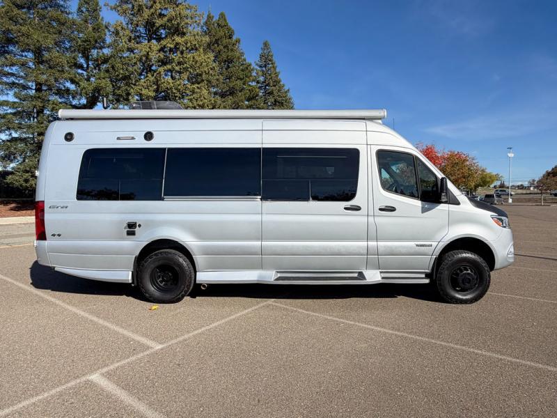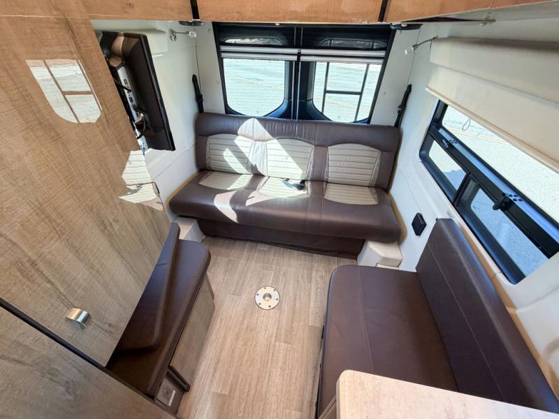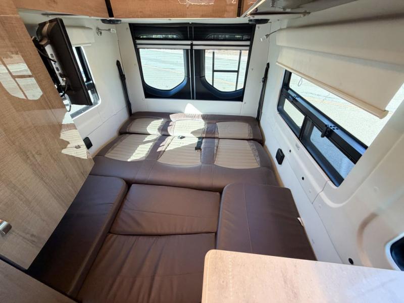You will enjoy the drive just as much as the destination with Ultraleather captain's seats, adjustable lumbar support, plus adaptive cruise control. The pedestal table can moved from the swivel sets, to in front of the sofa for convenience. Easily convert the rear power sofa to a 70" x 77" bed for a great night's rest, and the wet bath includes bi-fold doors for easy access. You can cook meals on the kitchenette including a microwave convection oven, and In the very back, you will find the double doors allow you to easily store a few things. This model also has a 4x4 option to make off-roading easier than ever!