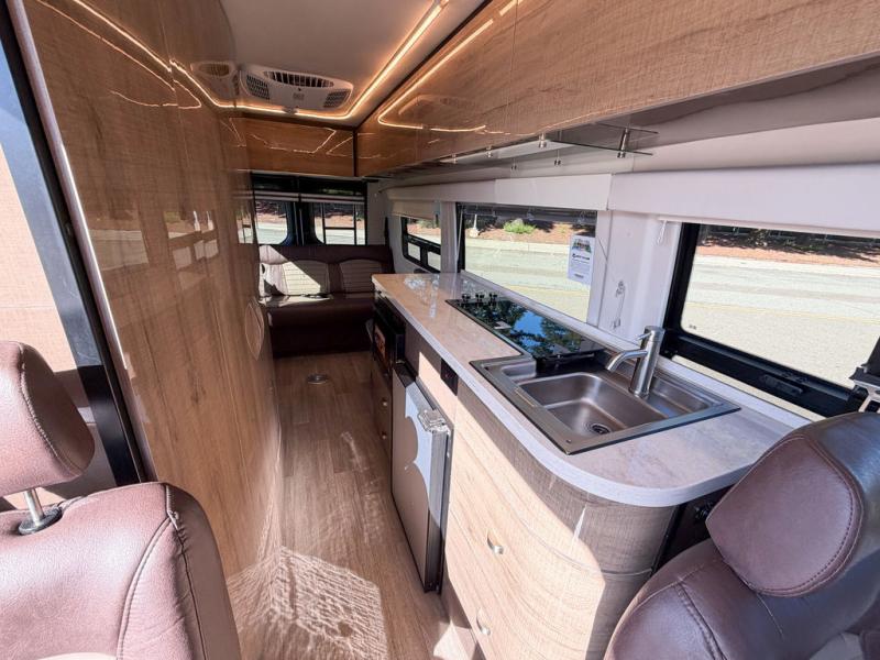 In any Winnebago Era class B diesel touring coach you will find a variety of seating, sleeping, bathing, and cooking options depending on the model you select. Built on the Mercedes-Benz Sprinter chassis you can be assured a powerful and fuel efficient vehicle for a variety of traveling needs. The contemporary styled interior with Ultraleather furnishings not only looks good, but feels good too! Each model includes an MBUX Touchscreen infotainment center and added safety features, such as active brake assist, crosswind assist, blind spot monitoring, plus a collision avoidance system! You will enjoy stainless steel appliances along with a compressor driven refrigerator for the best cooling performance possible. And, for those of you that like to go off-grid for awhile, the expandable solar power system and 2,500 watt Onan MicroQuiet LP generator allow you to camp just about anywhere in complete comfort and style!