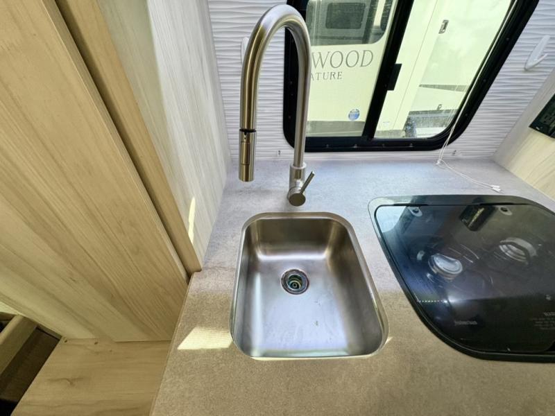 You and your friends will love camping in the wilderness with this travel trailer! There is a set of 48" x 74" bunk beds in the rear and a front U-shaped dinette than can transform into an extra sleeping space. Why cook all of your meals indoor on the drop-in two burner cooktop when you can cook in the great outdoors with the exterior pull-out cooktop. You can rinse the woods off in the shower then grab a snack from the wardrobe/pantry in the kitchen and watch a move on the LED TV!