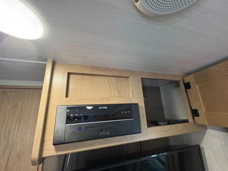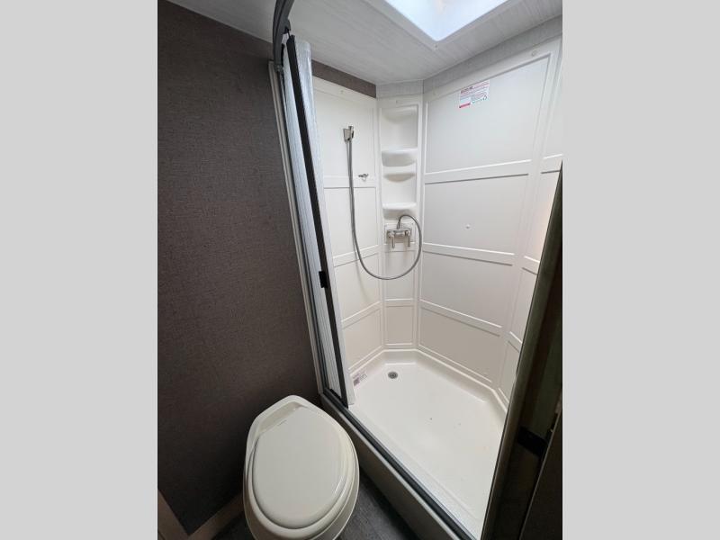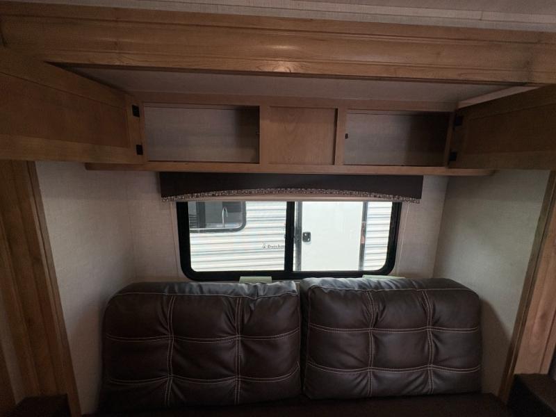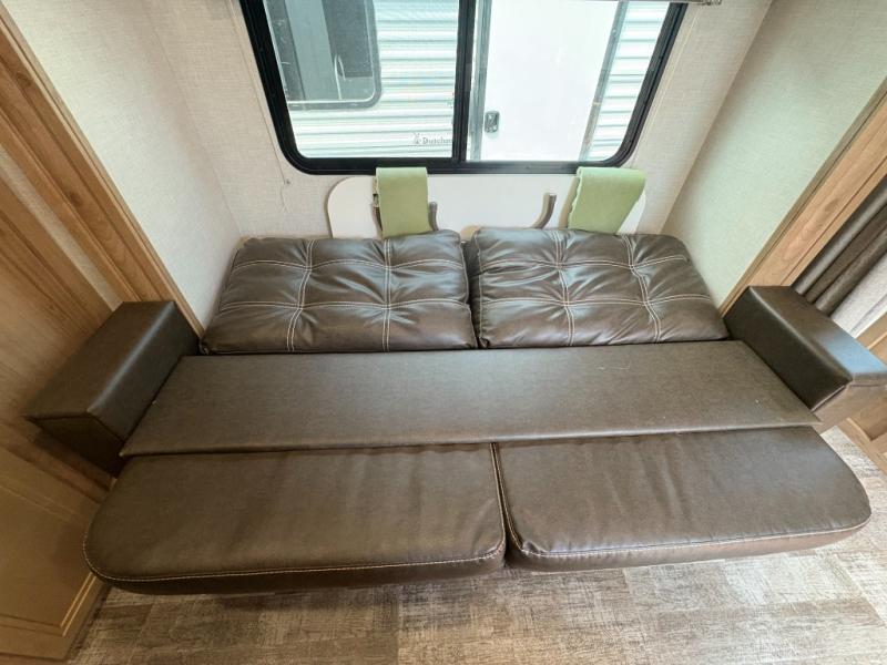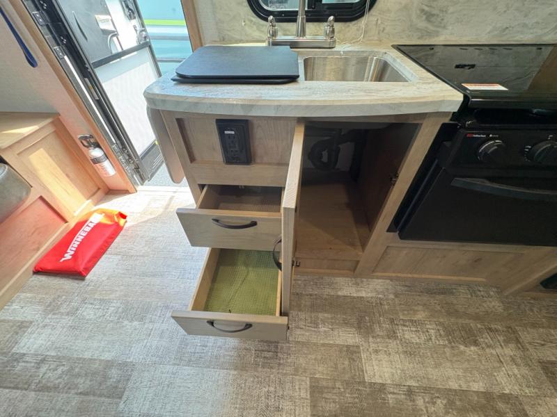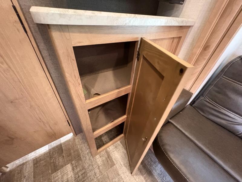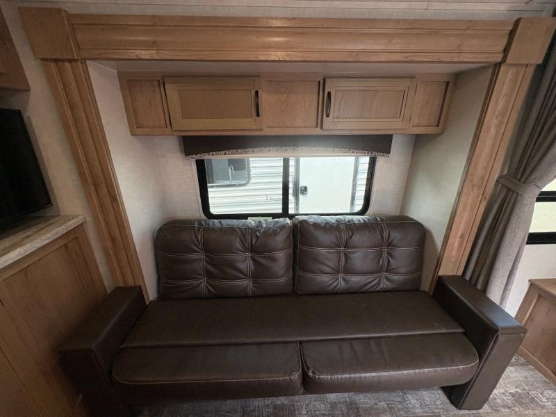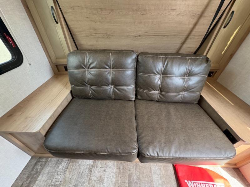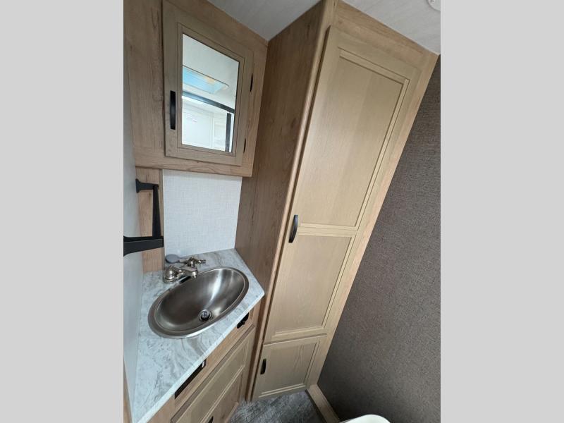 You're going to love the versatility of this travel trailer with the front Murphy bed with a wardrobe on one side and a nightstand on the other side! It also has a sofa slide with a folding table for you to enjoy your meals at and a full rear bathroom with a skylight above the shower and a wardrobe inside to store your linens. You can either whip up a home cooked meal on the three burner cooktop or pop some pizza rolls into the microwave to eat while you watch your favorite movie on the LED TV!
