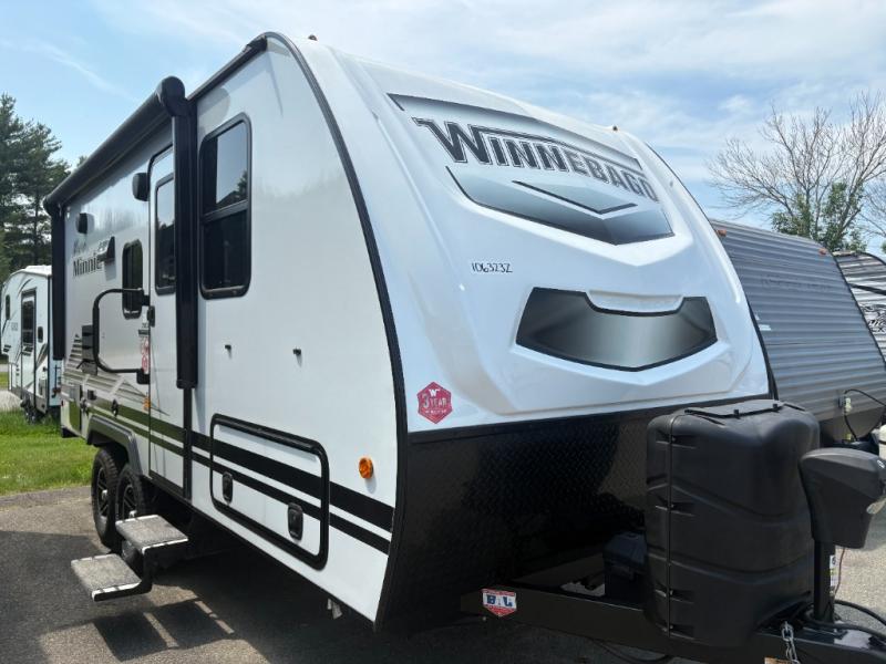 Start out on your boundless journey in one of these Winnebago Industries Towables Micro Minnie travel trailers! Towing is made simple with the 7' width to keep your Micro Minnie in your rear-view mirror and can turn at a snap. They don't lack in features although they are compact in size. The spacious galley with the sink, the double door refrigerator, the cooktop, and even a microwave allows you to cook without compromise. You will not only enjoy entertainment indoors with the LED TV, the AV system, the WiFi prep, and the wireless cell phone charger, but also outdoors with the patio speakers and the power awning with LED lighting. Each model comes with flexible exterior storage to make packing quick and easy. The extreme weather foil wrapping, the NXG engineered chassis, and the TPO roof ensures you will have years of fun with one of these!