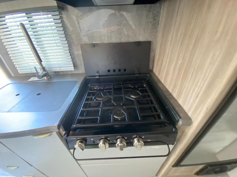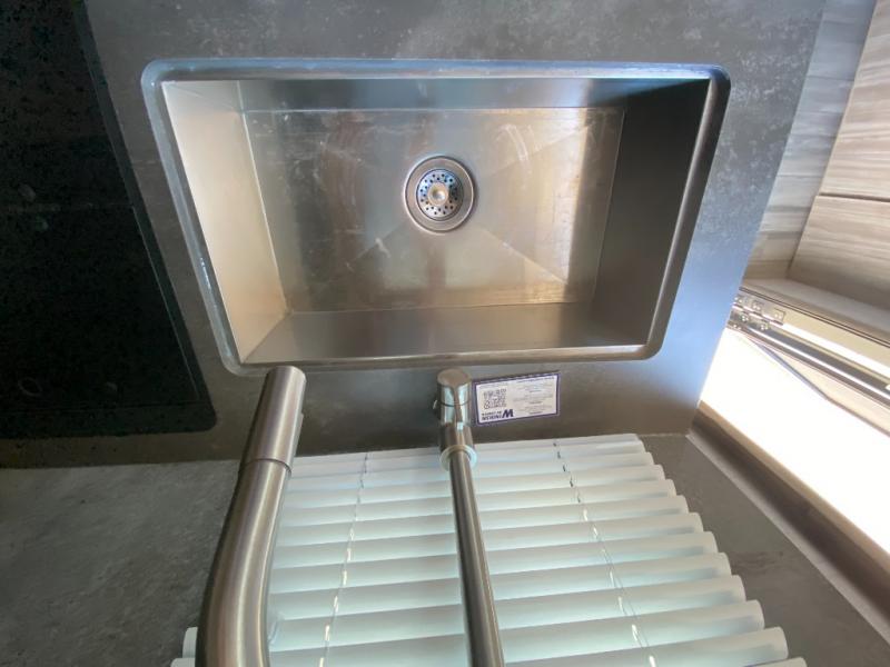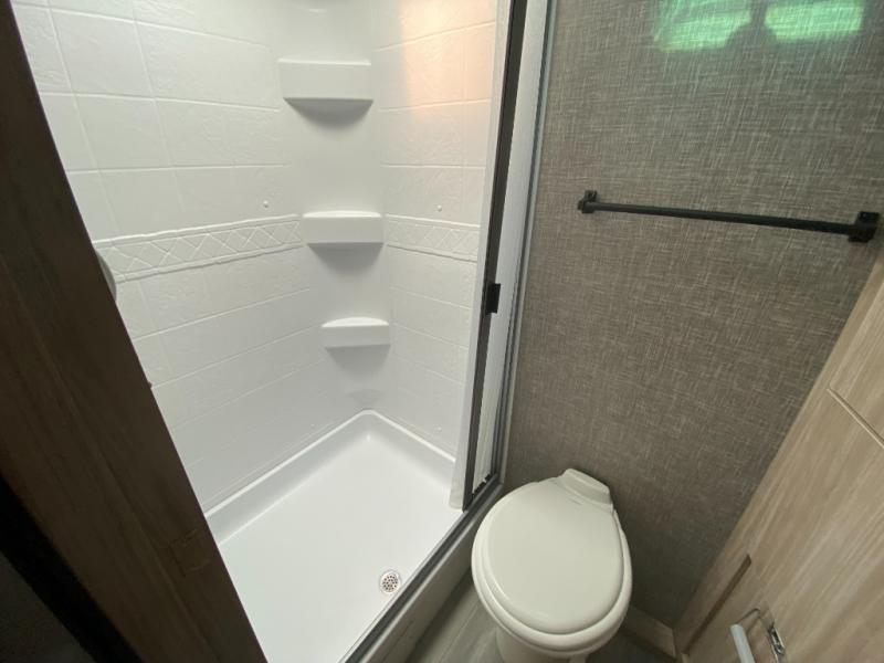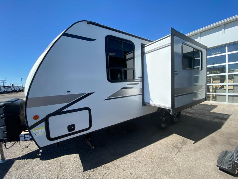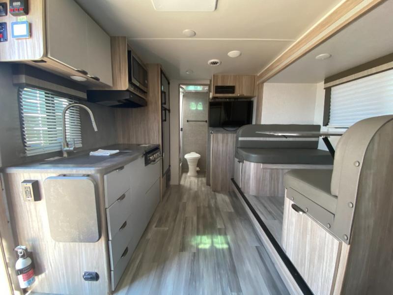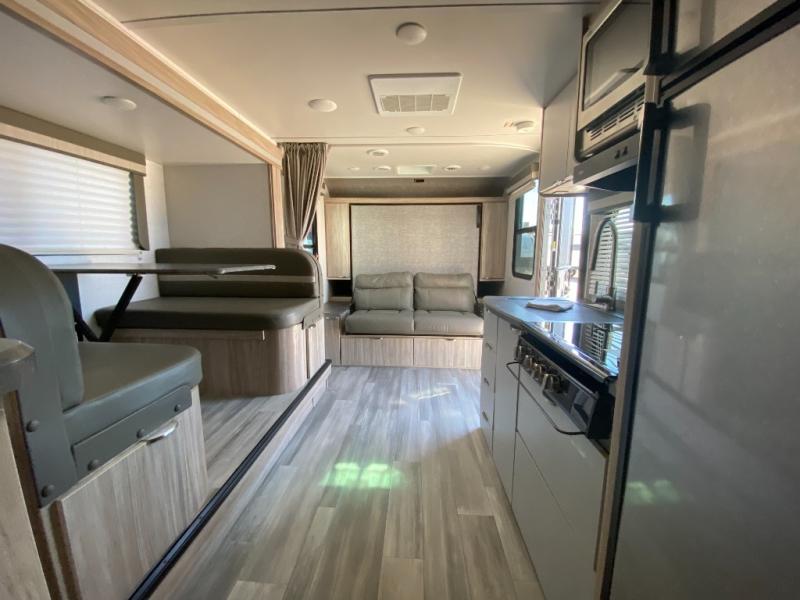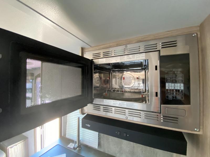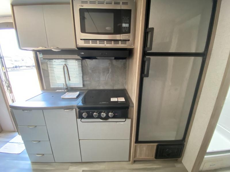 If you're looking for versatility then you need this travel trailer! Depending on the time of day you enter will determine whether you see the Murphy bed or the sofa up front. The 44" x 72" booth dinette slide can be used for eating your meals, playing games, and sleeping space at night. The full rear bathroom is equipped with everything you will need to freshen up each morning and provides a skylight above the shower and a wardrobe for your clothes and linens, plus a pocket door to save space. The LED TV is conveniently located so you can watch your favorite shows, plus the pantry offers a place to store your snacks and such for easy access. And the cook will love all the amenities to make meals including the handy flip-up counter.