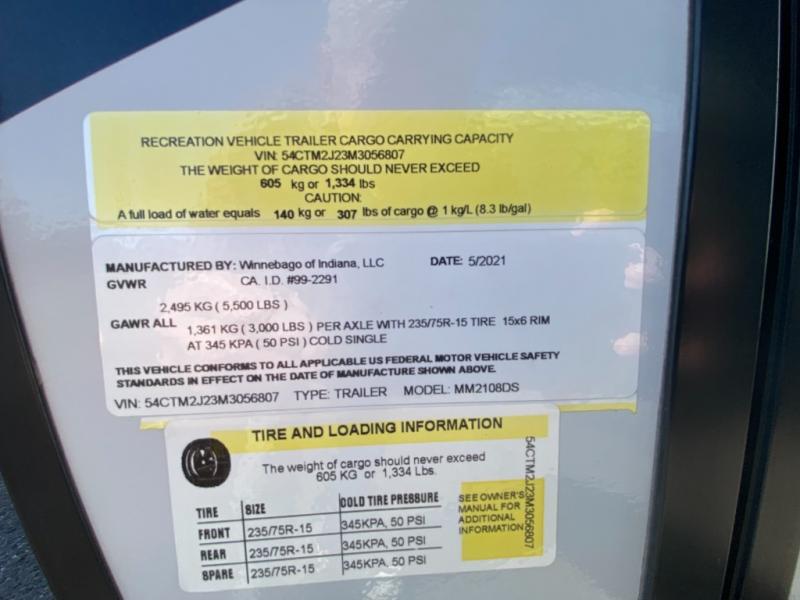 Used 2021 Winnebago Industries Towables Micro Minnie 2108DS Travel Trailer