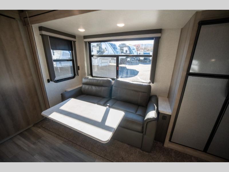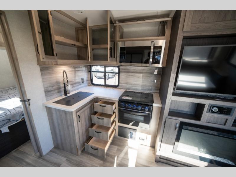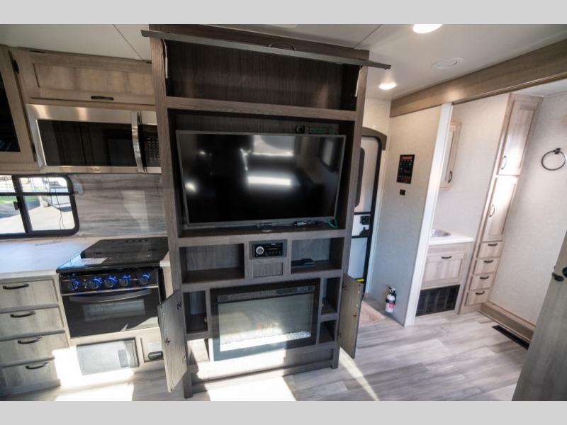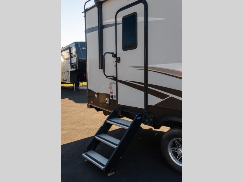 No voyage is better than the one taken in the Voyage travel trailer or fifth wheel from Winnebago Industries Towables! The Voyage has been built for explorers who dream of extended vacations that come with the comfort and connectivity of home. The Voyage has an excellent exterior with its gel-coat fiberglass front cap with integrated LED lighting, walk-on roof decking, electric awning with LED lighting, and exterior speakers. There are great modern features with the LED TV, USB charging ports, universal enclosed docking station, and DVD/CD/AM/FM dual-zone entertainment system with HDMI and Bluetooth. The Voyage is the escape you've been looking for!