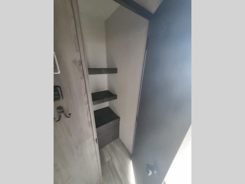 This Voyage travel trailer has an excellent layout that will suit you nicely! First, there are two entry doors so that you can choose to either enter the front private bedroom or the main living area. When you choose to enter through the rear main entrance, you will be met with a walk-in pantry to your right and a full rear bathroom to your left. That makes it very convenient when you are coming in after a muddy adventure so that you don't track dirt all throughout the trailer. Within the main living area is a large slide that has a tri-fold sofa and booth dinette. You will love sitting back on these pieces of furniture while you watch the entertainment center across from you, and you can always get up and grab a little snack from the second pantry in the L-shaped kitchen.