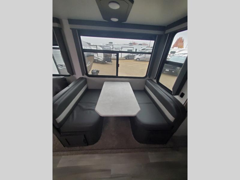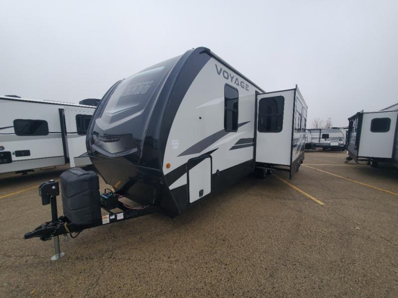 No voyage is better than the one taken in the Voyage travel trailer or fifth wheel from Winnebago Industries Towables! The Voyage has been built for explorers who dream of extended vacations that come with the comfort and connectivity of home. The Voyage has an excellent exterior with its gel-coat fiberglass front cap with integrated LED lighting, walk-on roof decking, electric awning with LED lighting, and exterior speakers. There are great modern features with the LED TV, USB charging ports, universal enclosed docking station, and DVD/CD/AM/FM dual-zone entertainment system with HDMI and Bluetooth. The Voyage is the escape you've been looking for!
