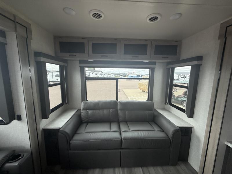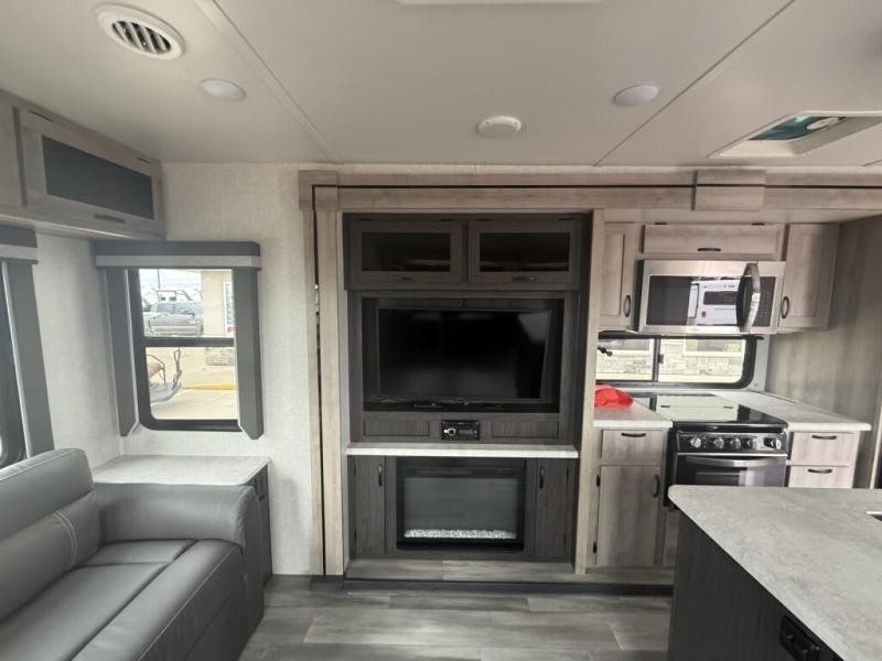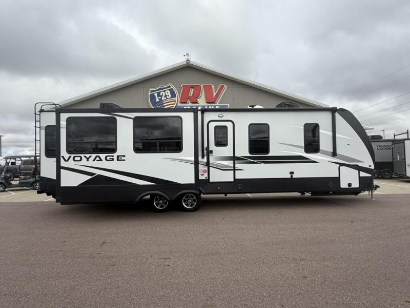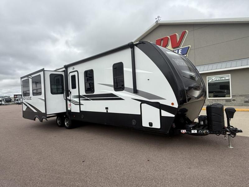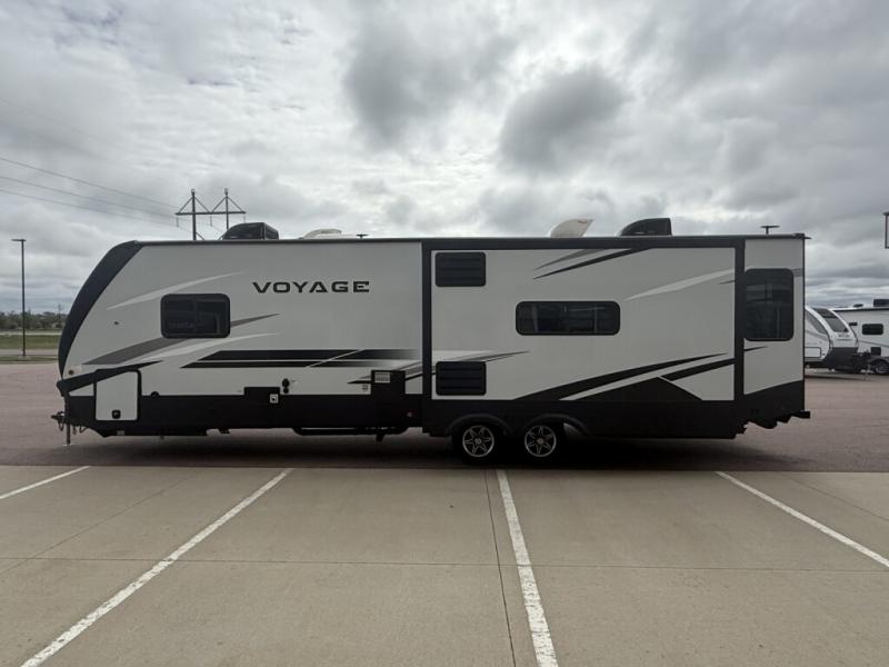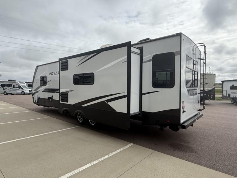 No voyage is better than the one taken in the Voyage travel trailer or fifth wheel from Winnebago Industries Towables! The Voyage has been built for explorers who dream of extended vacations that come with the comfort and connectivity of home. The Voyage has an excellent exterior with its gel-coat fiberglass front cap with integrated LED lighting, walk-on roof decking, electric awning with LED lighting, and exterior speakers. There are great modern features with the LED TV, USB charging ports, universal enclosed docking station, and DVD/CD/AM/FM dual-zone entertainment system with HDMI and Bluetooth. The Voyage is the escape you've been looking for!