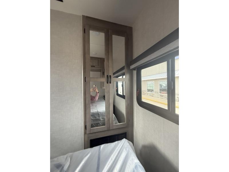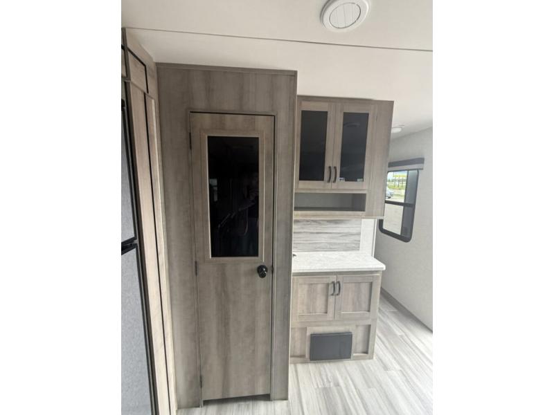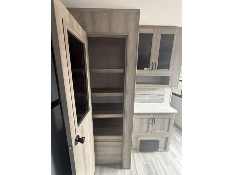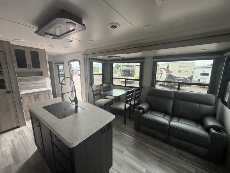 Are you looking for a comfortable way to see beautiful sights all throughout the country? This Voyage travel trailer will make every voyage one worth remembering! The interior provides you with great comfort as you sit back on the tri-fold sofa, in the theater seating, or at the free-standing table with chairs. The thing that you will notice most as you spend time in this trailer is that there is extra living space with the large opposing slides. This adds extra room for things like a kitchen island, a hutch, a second pantry, and an entertainment center. You will love having a full bathroom with a large skylight and residential bath fixtures, and the private bedroom with its queen-size bed is going to be a joy to have when you are extremely tired.