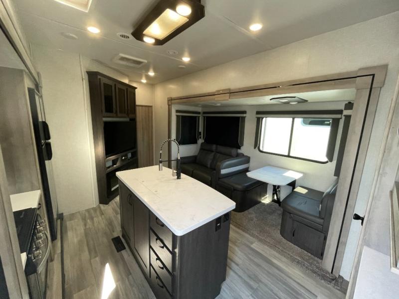Open Living Area — The spacious main living area flows seamlessly with a slide-out that increases room for sitting, dining, and socializing.