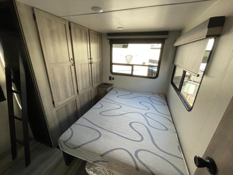 Private Master Bedroom — Enjoy quiet nights in a separate bedroom area with a comfortable bed and convenient storage.