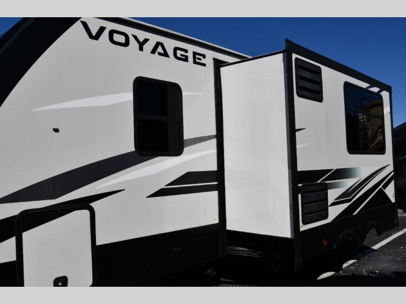 No voyage is better than the one taken in the Voyage travel trailer or fifth wheel from Winnebago Industries Towables! The Voyage has been built for explorers who dream of extended vacations that come with the comfort and connectivity of home. The Voyage has an excellent exterior with its gel-coat fiberglass front cap with integrated LED lighting, walk-on roof decking, electric awning with LED lighting, and exterior speakers. There are great modern features with the LED TV, USB charging ports, universal enclosed docking station, and DVD/CD/AM/FM dual-zone entertainment system with HDMI and Bluetooth. The Voyage is the escape you've been looking for!