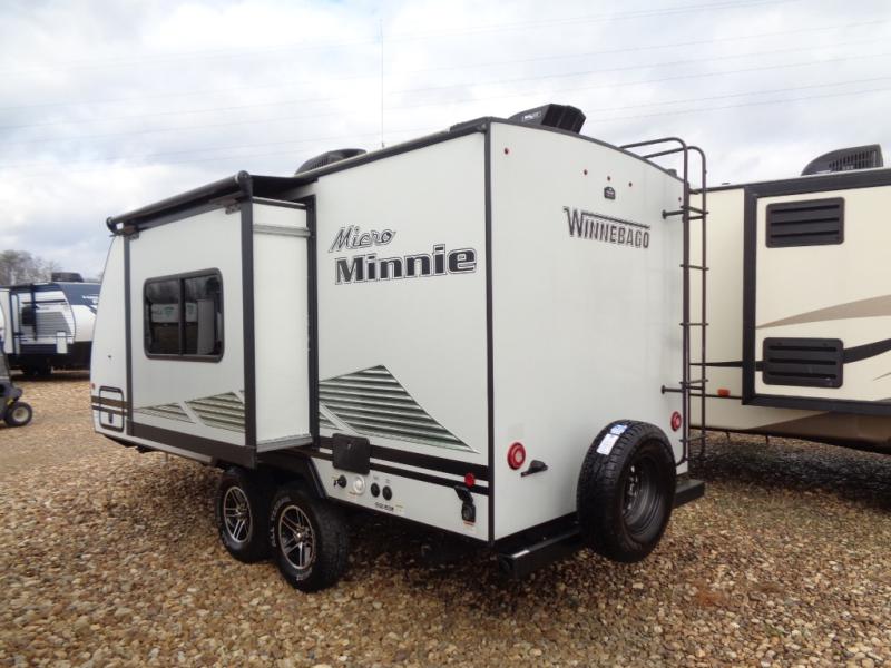 Start out on your boundless journey in one of these Winnebago Industries Towables Micro Minnie travel trailers! Towing is made simple with the 7' width to keep your Micro Minnie in your rear-view mirror and can turn at a snap. They don't lack in features although they are compact in size. The spacious galley with the sink, the double door refrigerator, the cooktop, and even a microwave allows you to cook without compromise. You will not only enjoy entertainment indoors with the LED TV, the AV system, the WiFi prep, and the wireless cell phone charger, but also outdoors with the patio speakers and the power awning with LED lighting. Each model comes with flexible exterior storage to make packing quick and easy. The extreme weather foil wrapping, the NXG engineered chassis, and the TPO roof ensures you will have years of fun with one of these!