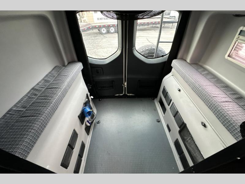 Who said you need a huge motorhome to see the country? This unit has everything you need for your next journey, and the four wheel drive allows you to go off the beaten path! Every space has been thought out in this model to maximize storage and sleeping space. The power lift bed is perfect for a good night's rest and the gear garage below can store your bikes or hiking gear. This unit features an all-in-one gear closet and wet bath, so you can use it to clean up or store your hiking gear. You can plan to go off-grid since this model includes a solar panel and battery charger and the dual-pane acrylic windows with insulated shades allow you to camp in the snowy mountains if you wish and you can be sure to stay warm!