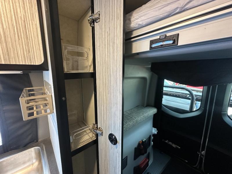 Who said you need a huge motorhome to see the country? This unit has everything you need for your next journey, and the four wheel drive allows you to go off the beaten path! Every space has been thought out in this model to maximize storage and sleeping space. The power lift bed is perfect for a good night's rest and the gear garage below can store your bikes or hiking gear. This unit features an all-in-one gear closet and wet bath, so you can use it to clean up or store your hiking gear. You can plan to go off-grid since this model includes a solar panel and battery charger and the dual-pane acrylic windows with insulated shades allow you to camp in the snowy mountains if you wish and you can be sure to stay warm!