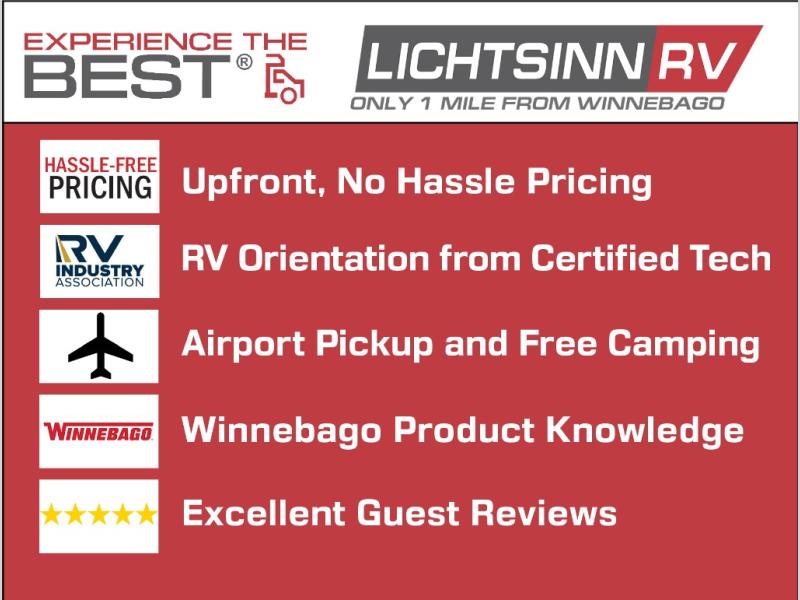 At Lichtsinn RV our website has full video walkarounds on each RV, making it easy for you to purchase. On our website you can go for a virtual test drive, purchase your RV over the phone or the internet, and then take delivery at our dealership, which is only 1 Mile from the Winnebago Motorhome Factory here in Forest City, Iowa!