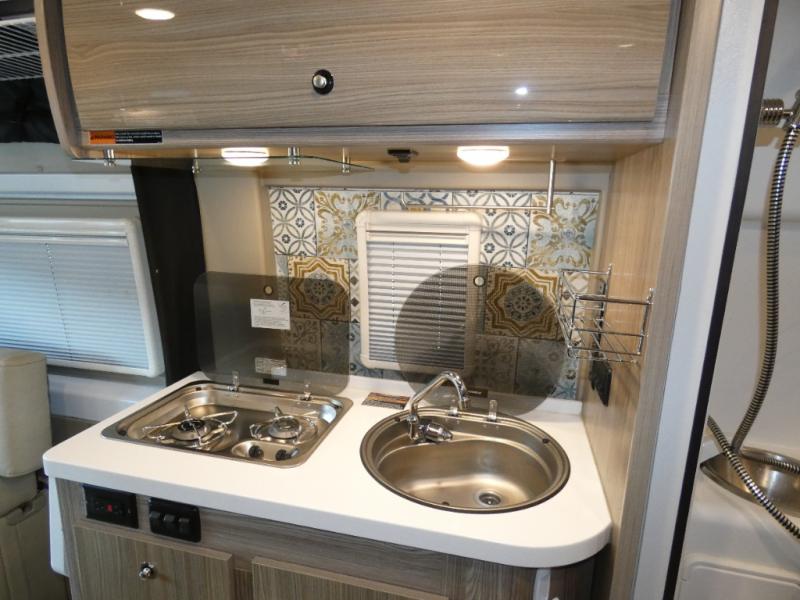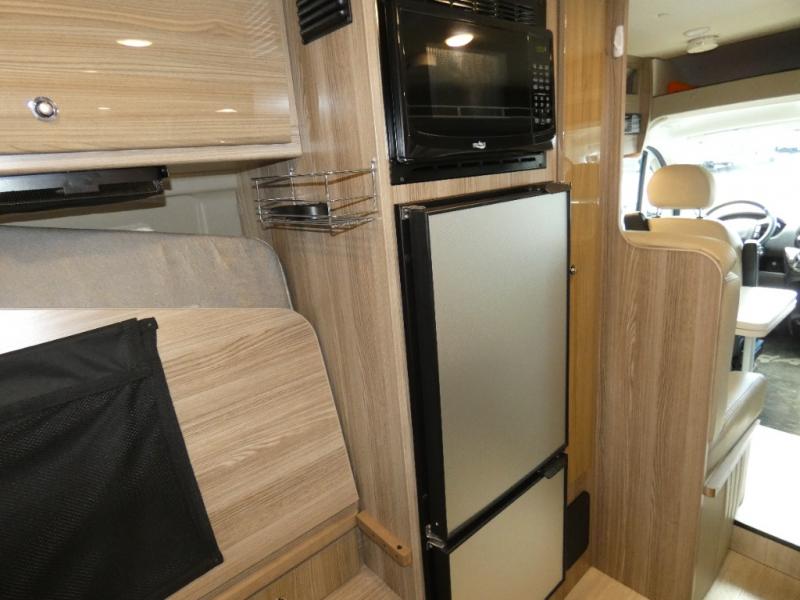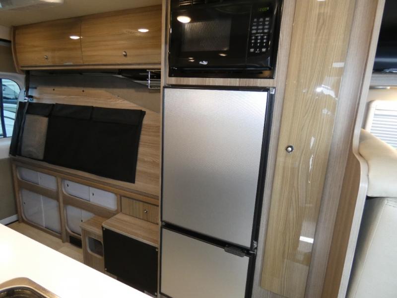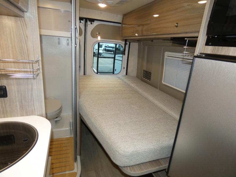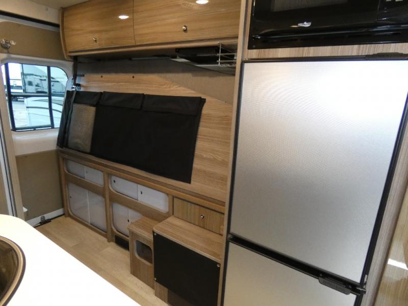 Efficiency meets comfort in the Travato Class B gas motorhome by Winnebago. The 215-watt solar panels and the energy management system allow you to go off-grid when the adventure calls for it, and the Coleman Mach 10 NDQ A/C will keep you comfortable during the hot summer months. If the weather is nice out, set up the power awning with LED lights or stay inside with the side and rear screen doors closed to keep the bugs out. Each model includes plenty of storage space, including RAM Tough-Track Mounts throughout, Anything Keepers, plus below floor storage for your outside gear. The Travato also includes a Corian countertop and a spice rack in the galley, a convenient medicine cabinet and mirror in the bath, plus LED ceiling lights throughout to keep everything bright and open!