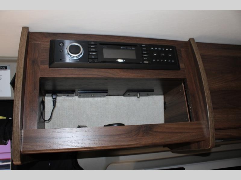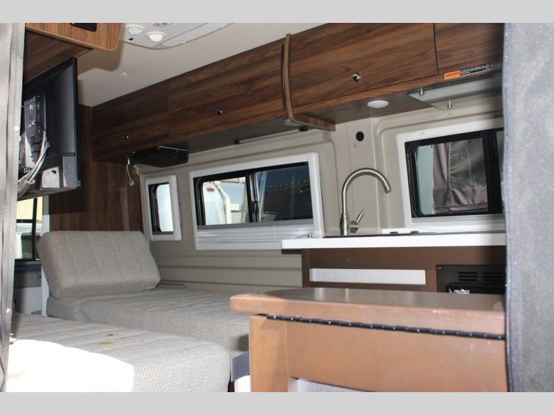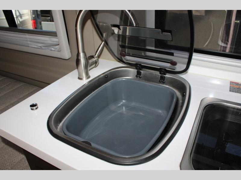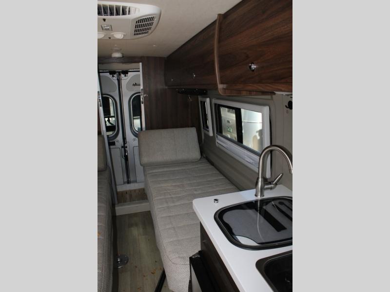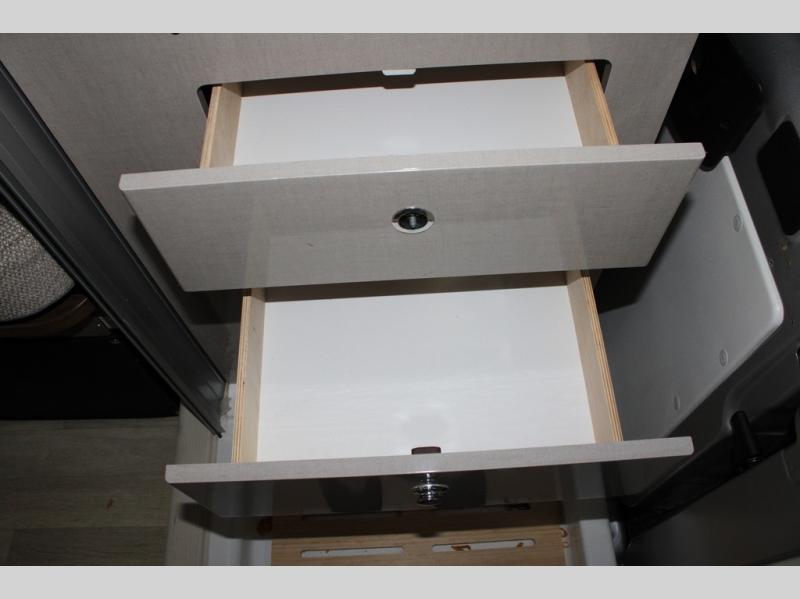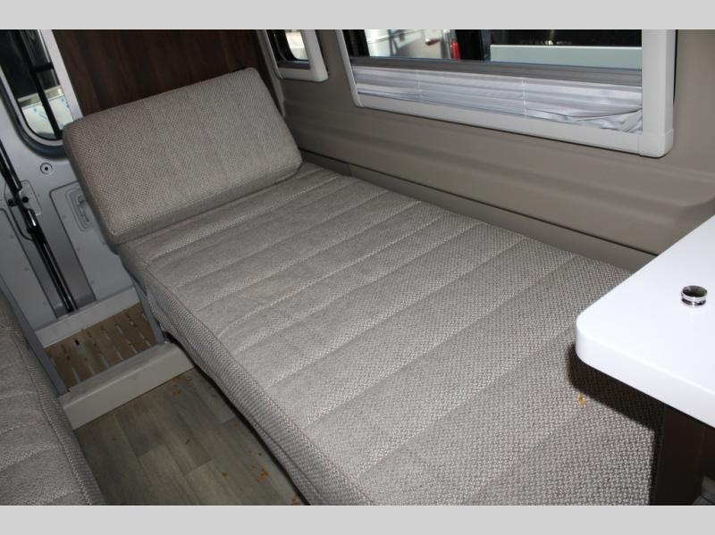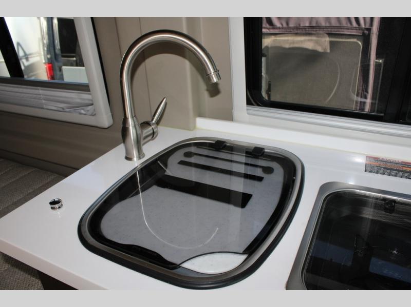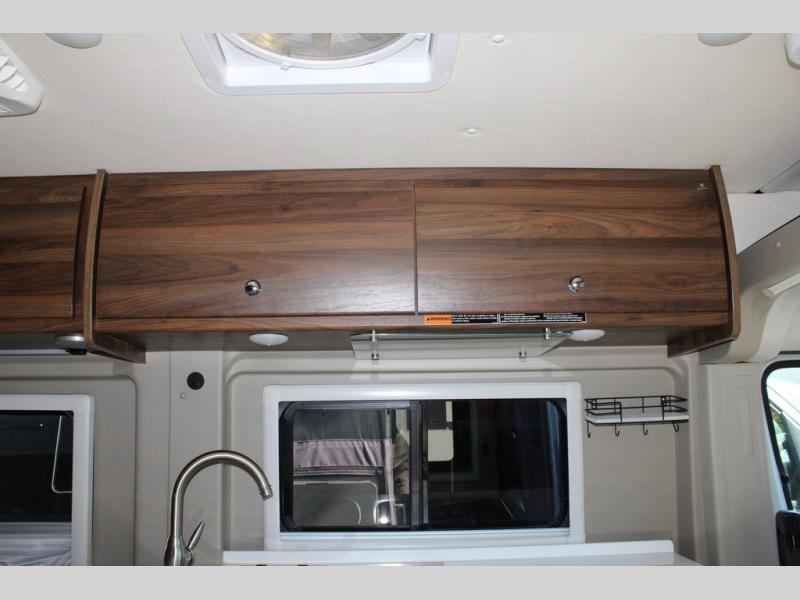 Efficiency meets comfort in the Travato Class B gas motorhome by Winnebago. The 215-watt solar panels and the energy management system allow you to go off-grid when the adventure calls for it, and the Coleman Mach 10 NDQ A/C will keep you comfortable during the hot summer months. If the weather is nice out, set up the power awning with LED lights or stay inside with the side and rear screen doors closed to keep the bugs out. Each model includes plenty of storage space, including RAM Tough-Track Mounts throughout, Anything Keepers, plus below floor storage for your outside gear. The Travato also includes a Corian countertop and a spice rack in the galley, a convenient medicine cabinet and mirror in the bath, plus LED ceiling lights throughout to keep everything bright and open!