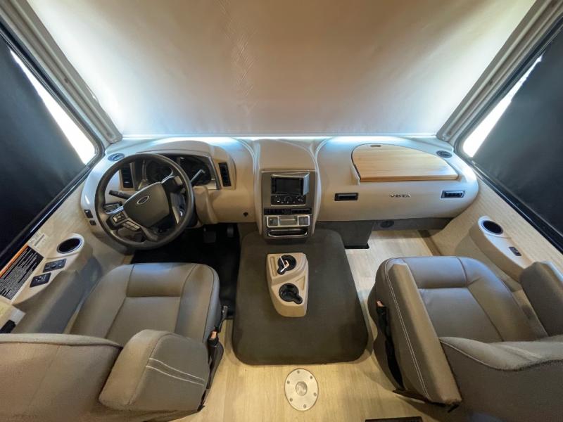 With any Vista Class A gas motorhome by Winnebago, you can travel at the right-price with flexible and spacious living accommodations. Some of the cab conveniences include a radio/rearview monitor system with 7.0" LCD color touch screen with various controls including a rear color system, a large panoramic windshield for good visibility when driving and great views, and a passenger dash workstation with USB and 12-volt powerpoint. Each Vista is built with a premium high-gloss sidewall skin, a Graphic or Deluxe package depending on the model you choose, lighted storage compartments, and a water system filtration package. The interior is spacious and offers thermoform countertops, USB chargers throughout for your electronics, the OnePlace systems monitor, and residential vinyl flooring throughout for years of enjoyment. Make your selection today!