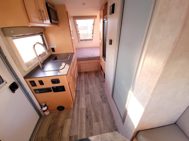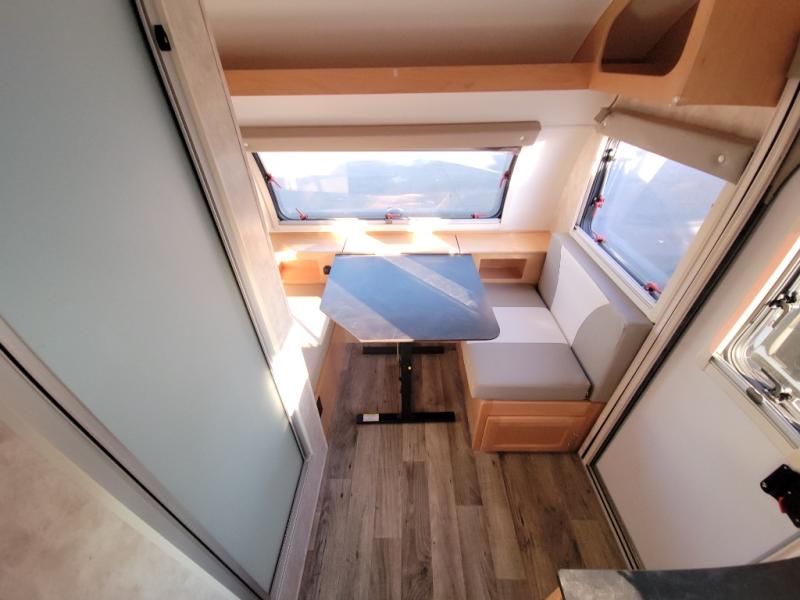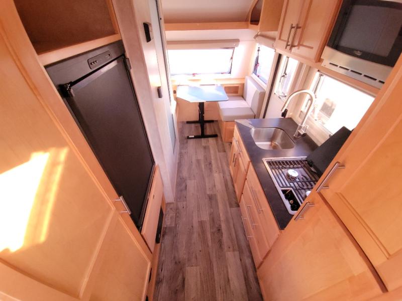 You are going to love camping with this Little Guy MAX teardrop trailer by Xtreme Outdoors! This unit is ultra light in weight making it easy to tow, and it provides everything you need to enjoy being on the go! Storage is not an issue with this model. The booth dinette has integrated storage throughout, and you can even convert the dinette into a single 32" x 76" bed at night. And the main sleeping space can be found at the rear queen bed. With the custom made master bed entertainment center including a 24" 12V TV and speakers, you can relax in bed while watching your favorite programs. The kitchen has a floor-to-ceiling pantry, and the bedroom has tons of storage including shelving, plus device charging and a storage center.