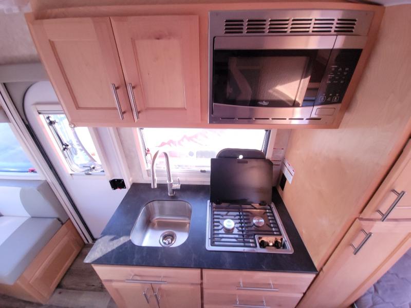 With the Xtreme Outdoors teardrop trailer your exterior is built with tubular steel chassis construction with automotive paint finish, aluminum-framed sidewalls and roof, and a one-piece seamless fiberglass roof. Inside, you will love the 100% hardwood cabinetry with dovetail construction, and the 13,500 BTU roof-mounted air conditioner to keep you cool in the summer, plus much more depending on the model you choose. You will also find that there are plenty of upgrades to choose from, such as a flexible Zamp solar panel, a Jack-It bike carrier, the Rough Rider package and a Thule awning.