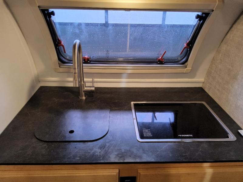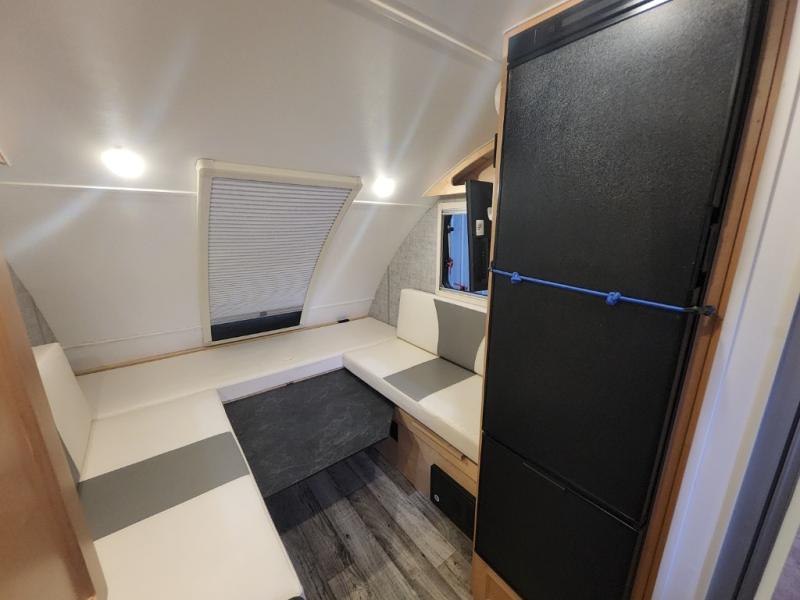 For your next camping trip, you will want this Little Guy Mini MAX teardrop trailer that is towable by most crossovers. There is sleeping space for two, and you will enjoy plenty of conveniences, such as a wet bath with a three-function sprayer and a marine-style toilet. Enjoy your meals at the U-shaped dinette that can convert into one queen-size bed or two twin-size beds. Your perishables will stay cool in the 5 cu. ft. refrigerator which has double doors and a tall profile, plus it is astonishingly large for this class of RV. The four insulated dual pane windows have a darker tint for privacy and temperature control, and when you are laying in bed at night, you can enjoy a view of the stars from the optional vertical stargazer window which opens nearly 90 degrees and offers plenty of natural light during the day.
