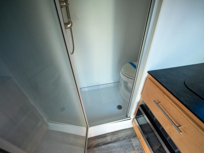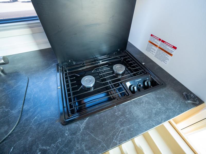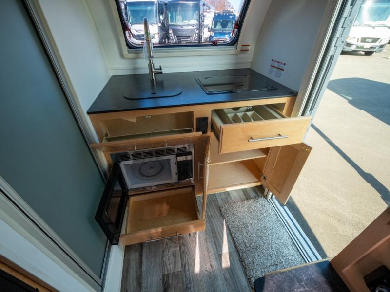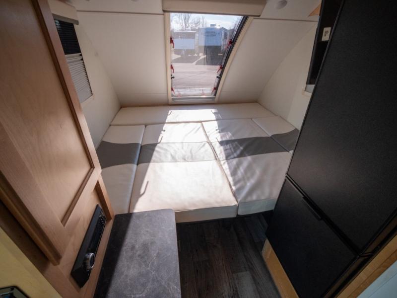 For your next camping trip, you will want this Little Guy Mini MAX teardrop trailer that is towable by most crossovers. There is sleeping space for two, and you will enjoy plenty of conveniences, such as a wet bath with a three-function sprayer and a marine-style toilet. Enjoy your meals at the U-shaped dinette that can convert into one queen-size bed or two twin-size beds. Your perishables will stay cool in the 5 cu. ft. refrigerator which has double doors and a tall profile, plus it is astonishingly large for this class of RV. The four insulated dual pane windows have a darker tint for privacy and temperature control, and when you are laying in bed at night, you can enjoy a view of the stars from the optional vertical stargazer window which opens nearly 90 degrees and offers plenty of natural light during the day.
