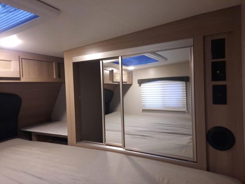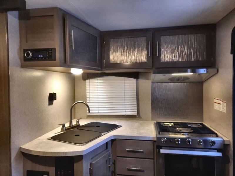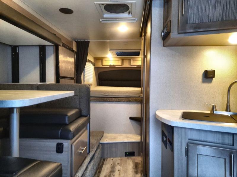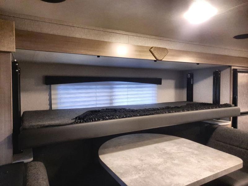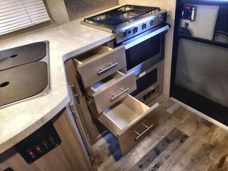 If you have a long bed truck then you need this truck camper for your next getaway! The super U-shaped dinette and Dometic 7 cu. ft. refrigerator slide opens up the living space and you can even add an optional power bunk for extra sleeping space. There is also a front California king bed to lay your head on at night with a nightstand and a sliding wardrobe door for your clothes. Prepare delicious home cooked meals for everyone with the sealed three burner cooktop with residential grate and easily clean up with the stainless steel double bowl sink. Everyone will stay squeaky clean with the separate one-piece fiberglass shower in the dry bath and there is a full roof skylight for added natural lighting as you get ready.