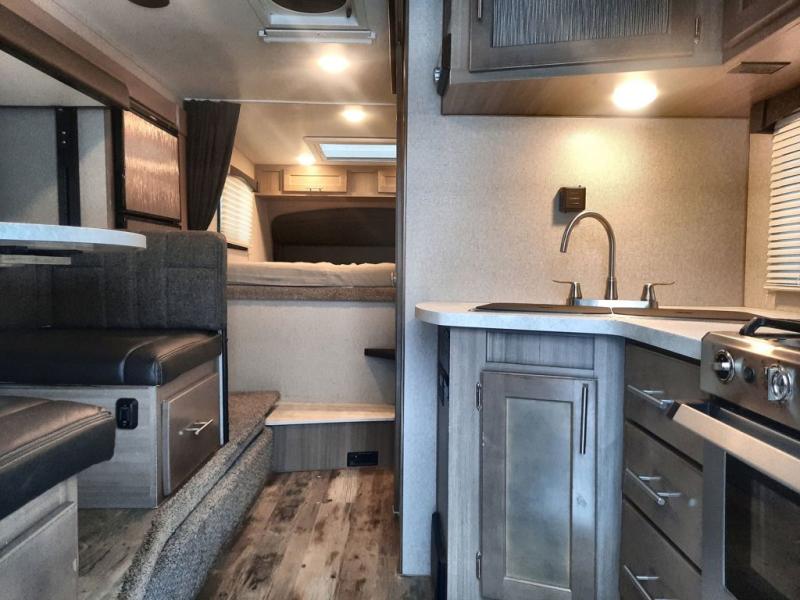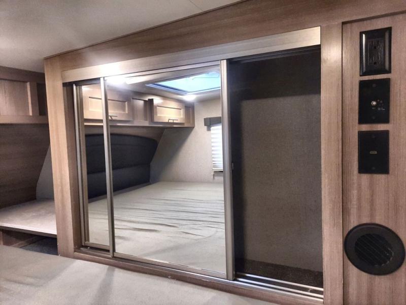 If you have a long bed truck then you need this truck camper for your next getaway! The super U-shaped dinette and Dometic 7 cu. ft. refrigerator slide opens up the living space and you can even add an optional power bunk for extra sleeping space. There is also a front California king bed to lay your head on at night with a nightstand and a sliding wardrobe door for your clothes. Prepare delicious home cooked meals for everyone with the sealed three burner cooktop with residential grate and easily clean up with the stainless steel double bowl sink. Everyone will stay squeaky clean with the separate one-piece fiberglass shower in the dry bath and there is a full roof skylight for added natural lighting as you get ready.
