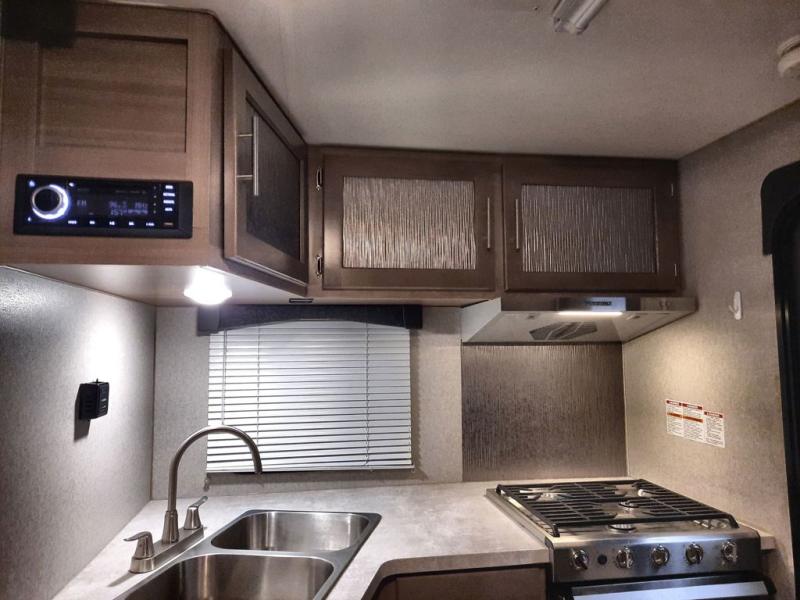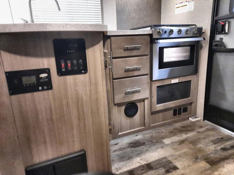 If you have a long bed truck then you need this truck camper for your next getaway! The super U-shaped dinette and Dometic 7 cu. ft. refrigerator slide opens up the living space and you can even add an optional power bunk for extra sleeping space. There is also a front California king bed to lay your head on at night with a nightstand and a sliding wardrobe door for your clothes. Prepare delicious home cooked meals for everyone with the sealed three burner cooktop with residential grate and easily clean up with the stainless steel double bowl sink. Everyone will stay squeaky clean with the separate one-piece fiberglass shower in the dry bath and there is a full roof skylight for added natural lighting as you get ready.