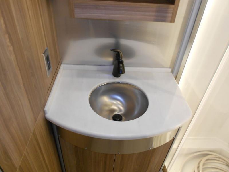 With the Atlas Class B+ diesel motorhome by Airstream, you not only get an enduring Airstream design, conveniences and luxury features, you also get the proven Mercedes-Benz safety systems and performance. The coach is built with Azdel composite roof, floor, and wall material, a vacuum-bonded aluminum framed floor, radius walls, a fiberglass crowned roof for extra headroom, trimless smooth fiberglass body seams, and molded fiberglass front and rear caps. The main cabin offers adjustable LED lighting, flush-mount cabinet hardware and soft close doors, a Froli ergonomic bed support system for a good night's sleep, Ultraleather seating, USB charging ports for your electronics, marine woven synthetic flooring, and matte finish laminate cabinetry to mention a few highlights. When you are wanting quality and craftmanship, and a well-traveled life, choose the Atlas and never turn back!