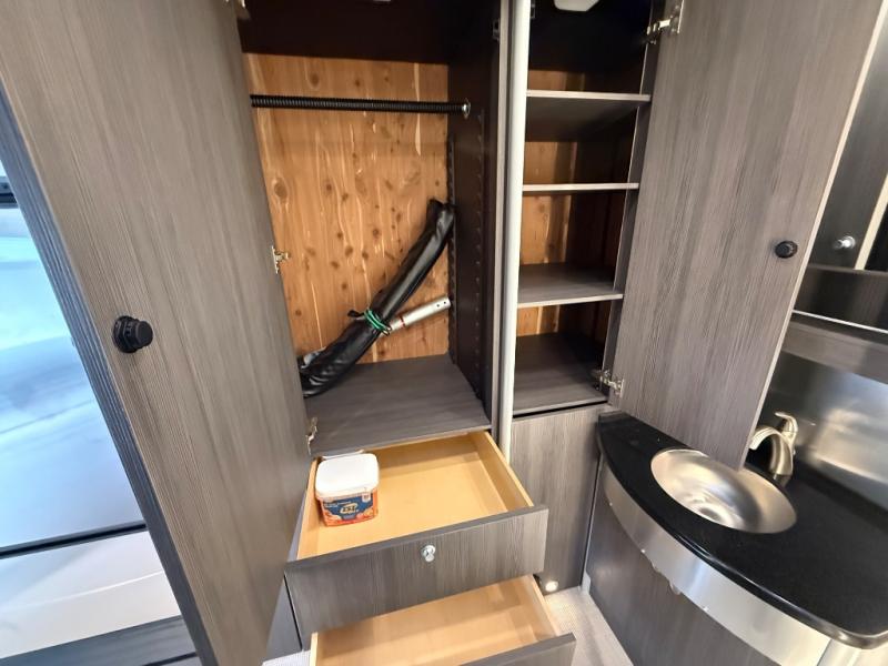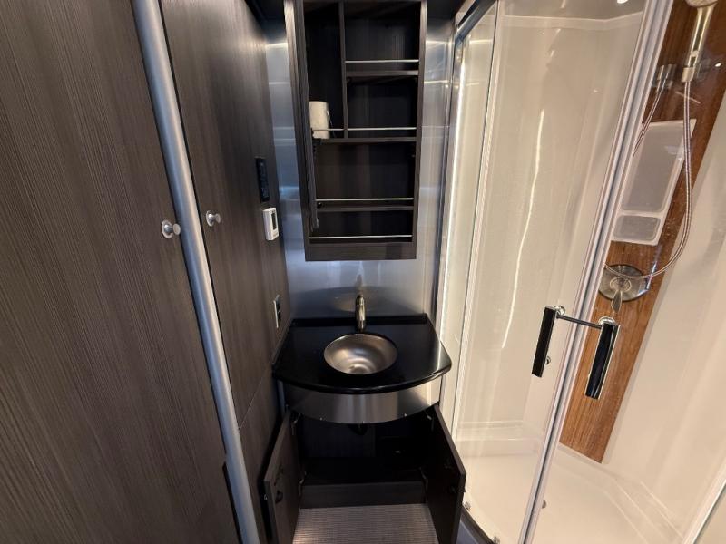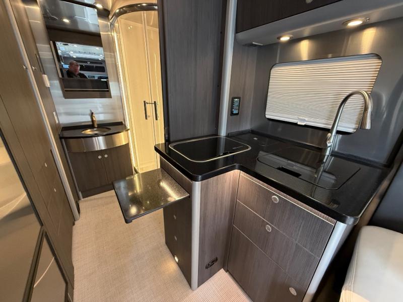 2022 Airstream Atlas Murphy Suite is a luxury Class B+ diesel motorhome built on the Mercedes-Benz® Sprinter 3500 chassis. It features a unique power slide-out that expands the living area and accommodates a large Murphy bed, along with a spacious residential-style rear bathroom. Key Features