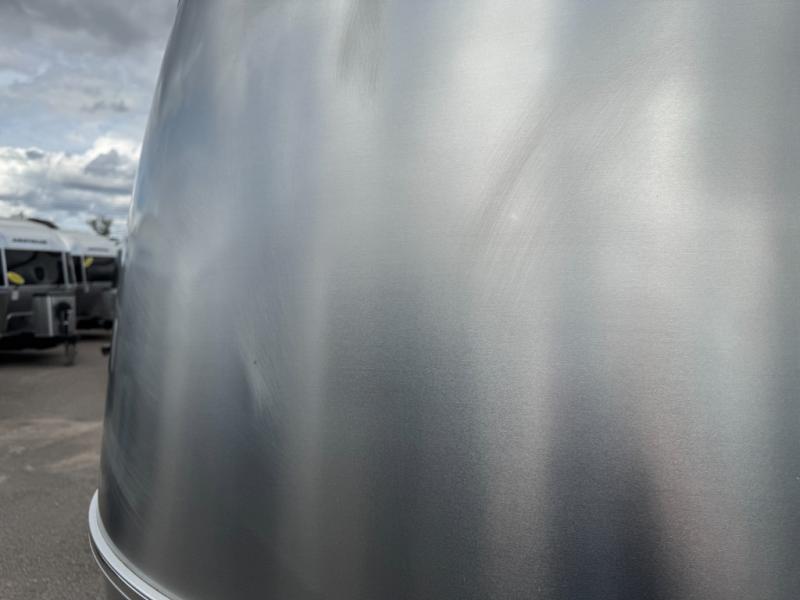 You'll always have a stylish and comfortable place to stay with the Airstream Caravel travel trailer! The manual Zip Dee patio awning is made of a performance Sunbrella fabric, and there are matching optional window awnings that can help keep the interior cool and private. The rear bumper storage will help you keep your tools, cords, and more hidden away in a bonus storage space, and the JL stereo with Bluetooth, surround sound, and subwoofer will play your music throughout the trailer. If you add the optional 90W rooftop solar package, you can stay powered while off the grid, and the blackout curtains will let you have privacy when you head to bed. The stainless steel front stone guard protection will prevent damage to the body of your trailer while towing, and the panoramic windows will make the interior fresh and bright with natural sunlight.