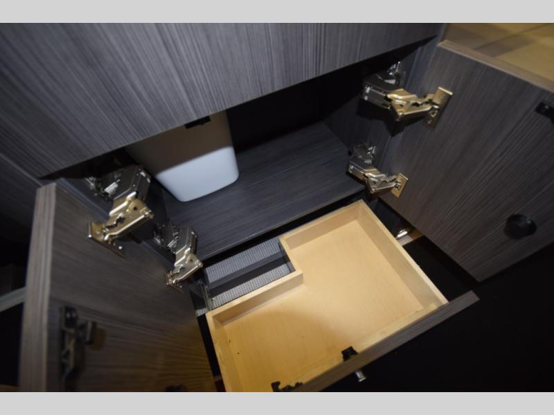 When it’s time to relax, transform the rear power sofa and side seats into a spacious, lay-flat bed—the largest in its class—for a restful night’s sleep under the stars. Inside, you’ll find everything needed to cook up your favorite meals: a two-burner gas cooktop, convection microwave, and a 3.2 cu. ft. 12V refrigerator/freezer, all complemented by a sleek slide-out pantry for easy-access storage.