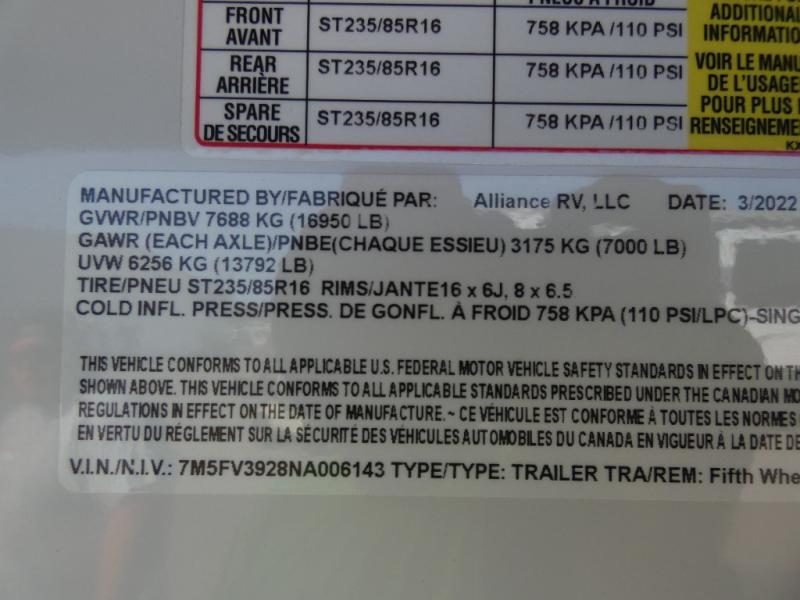 Used 2022 Alliance RV Valor 36V11 Toy Hauler Fifth Wheel