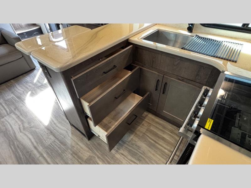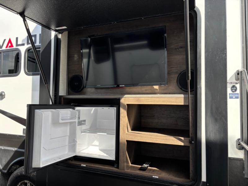You can bring your toys with you wherever you go with any one of these Alliance RV Valor toy haulers! They are adventure-ready with a quality build from the walk on roof with seamless PVC roof covering to the commercial grade vinyl flooring and MorRyde CRE3000 suspension system. The Performance Running Gear package comes with a 101" wide-body benchmark chassis platform, 7,000 lb. Dexter axles, and a pass-through basement storage with an additional front compartment for all your gear. You can even go off-gridding thanks to the Off the Grid Pack that has two 320 watt solar panels, generator prep, a 40 amp charge controller, and a 100 amp hour lithium iron phosphate battery, plus a battery monitor system. Come find the right one for you today!